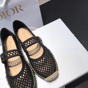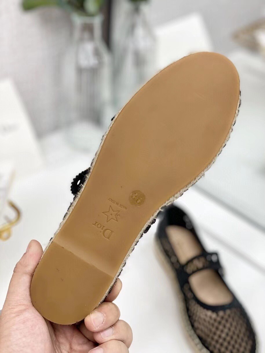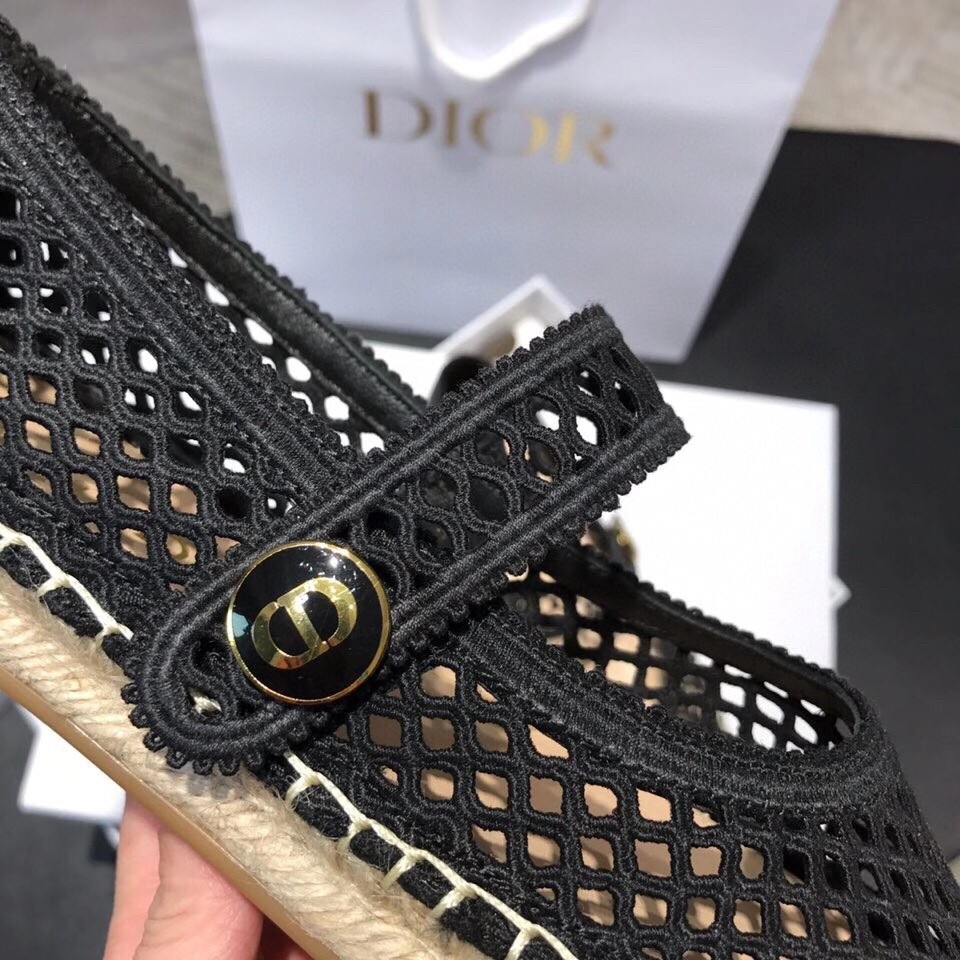 Dior Caro Espadrille Ballerina Flat In Black Mesh Embroidery