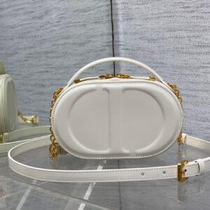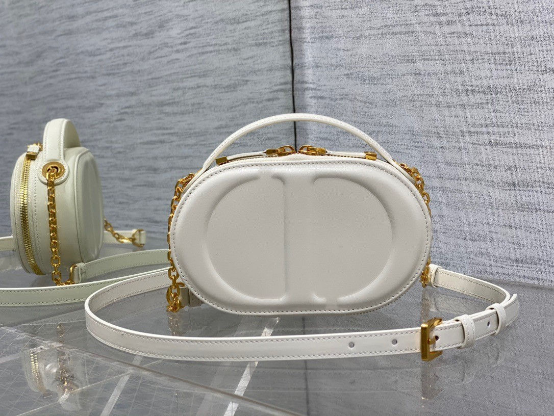Dior CD Signature Oval Camera Bag in White Calfskin
