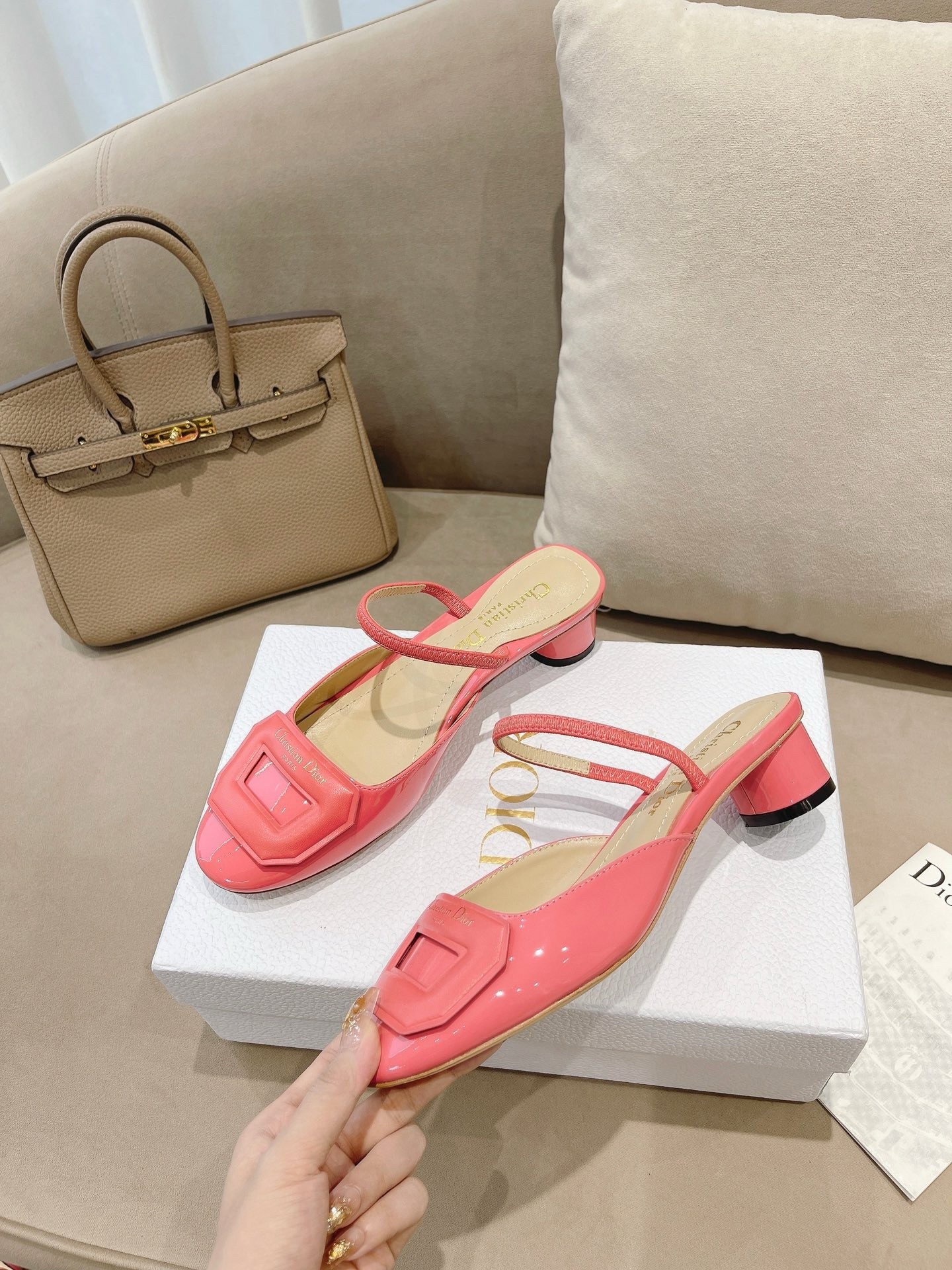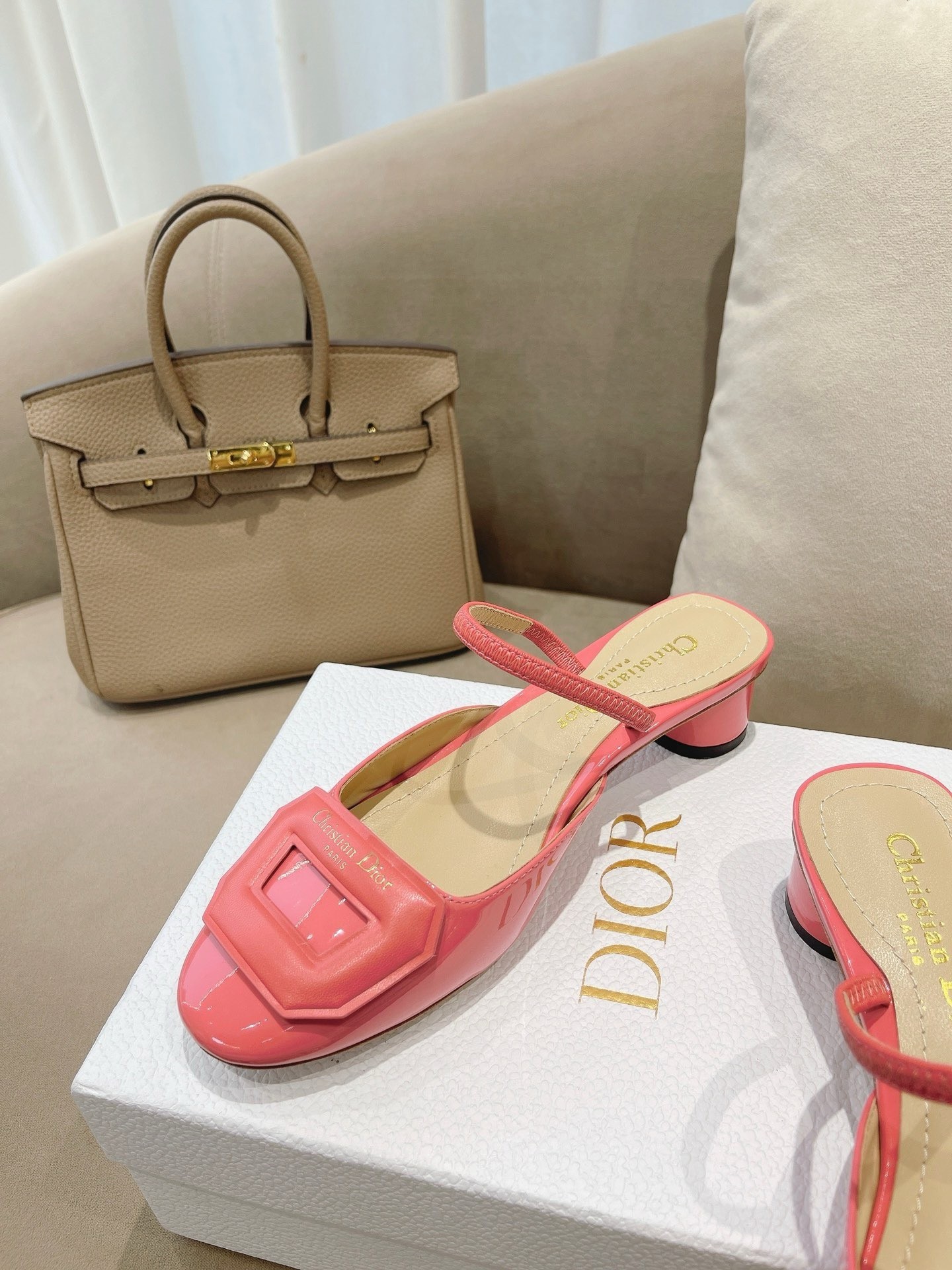 Dior Day Slingback Pumps 35MM in Pink Patent Calfskin