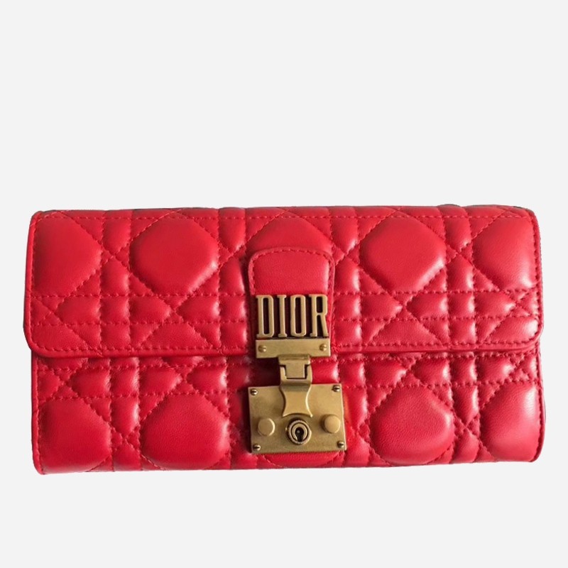 Dior DiorAddict Continental Wallet In Red Lambskin