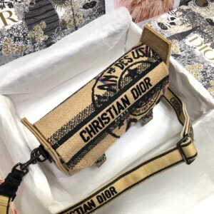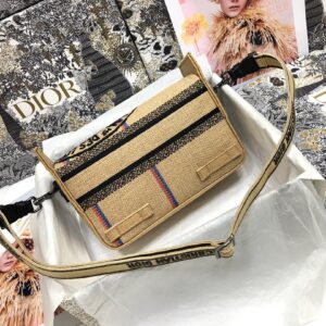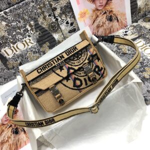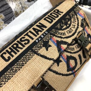 Dior Diorcamp Small Bag In Beige Jute Canvas with Dior Union Motif