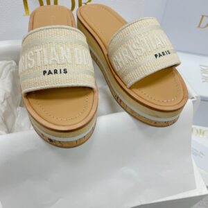 – Thick sole in wood, rubber and cork with engraved star, Christian Dior’s lucky symbol