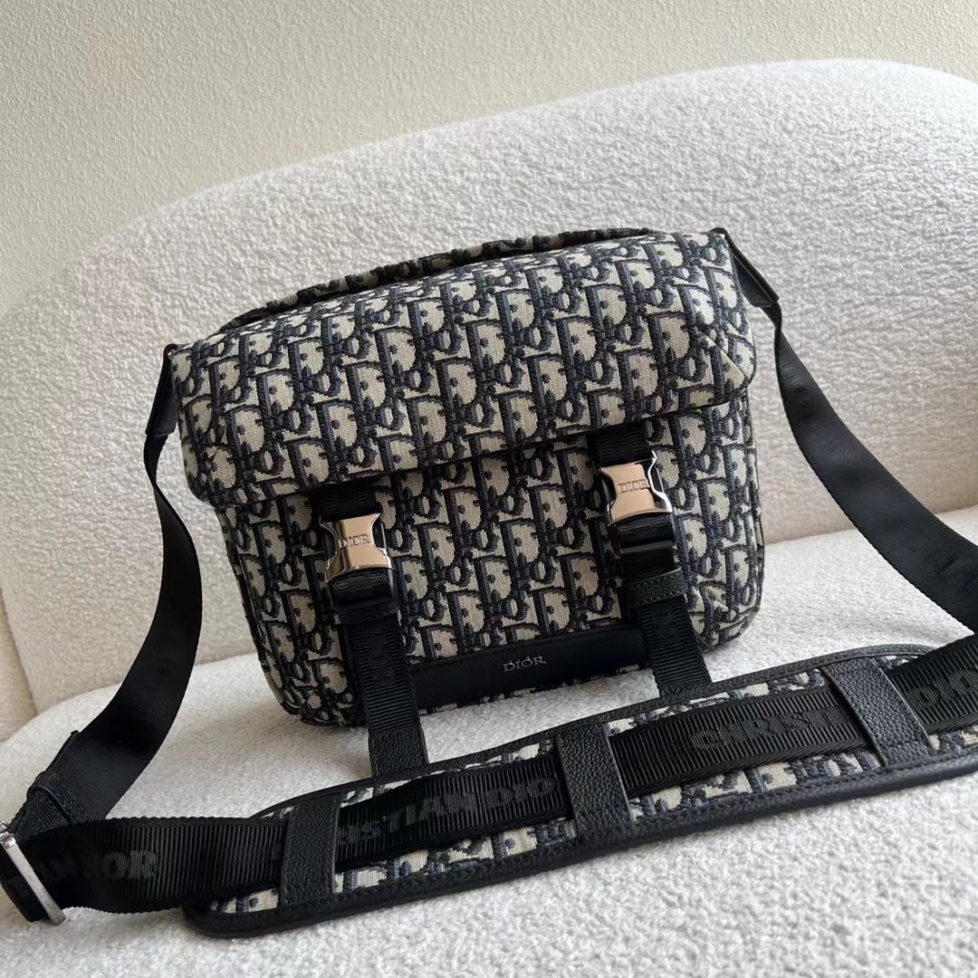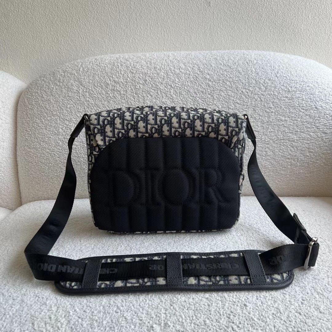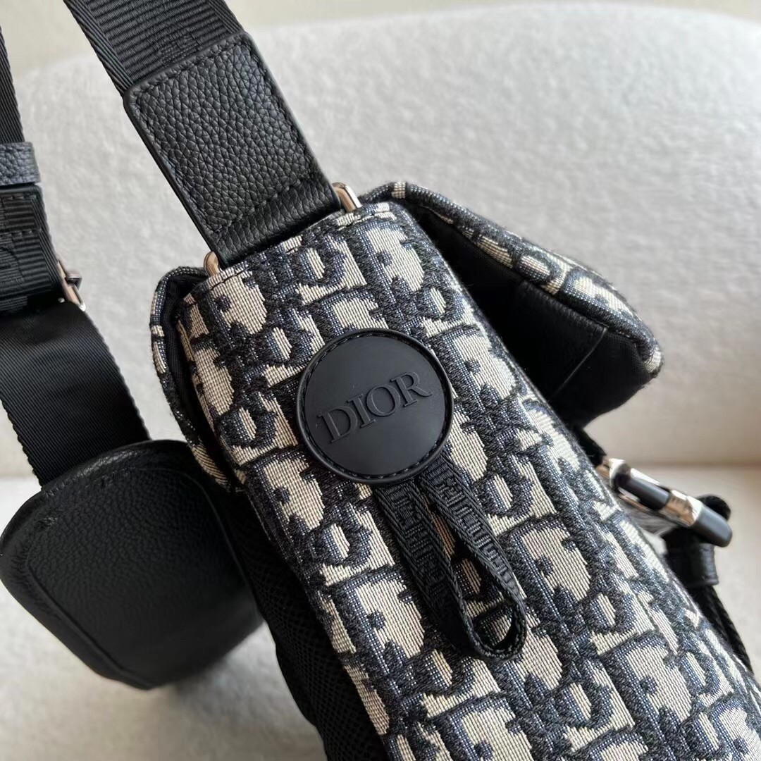 – Adjustable ‘Christian Dior’ nylon jacquard shoulder strap with padded leather insert