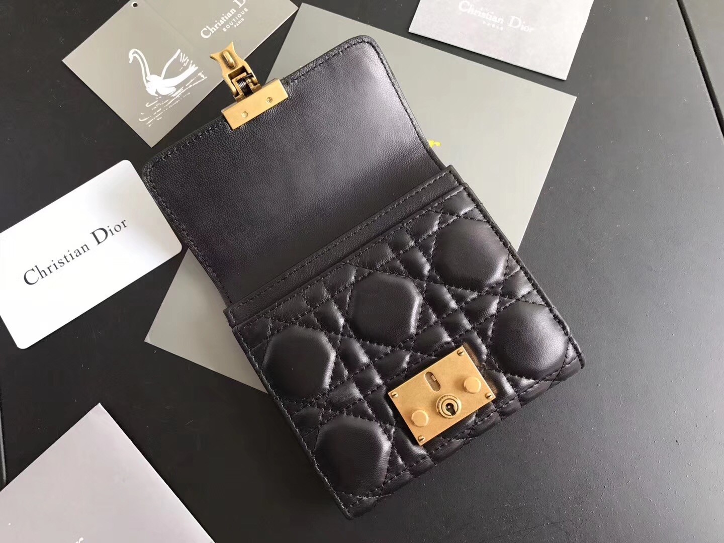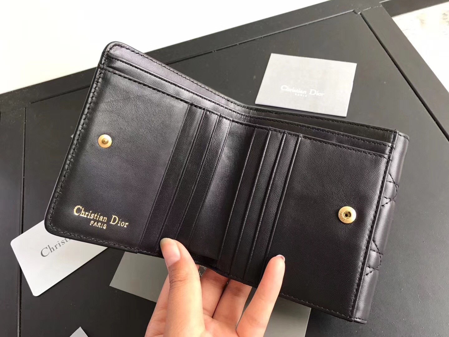 Dior French DiorAddict Wallet In Black Lambskin