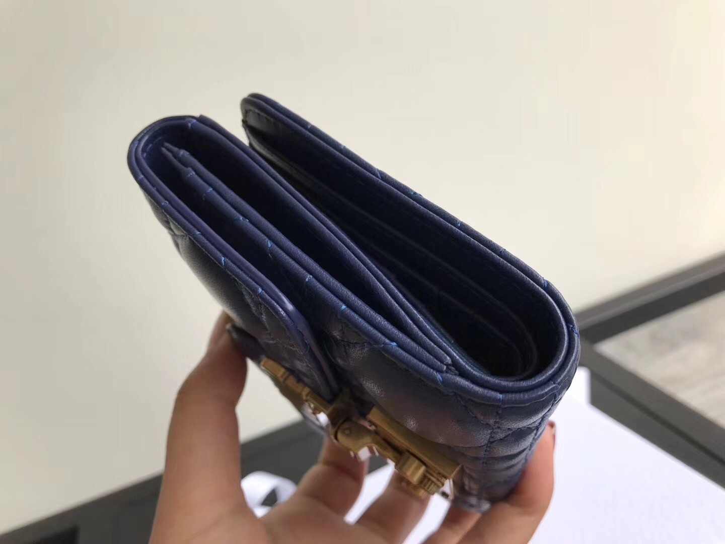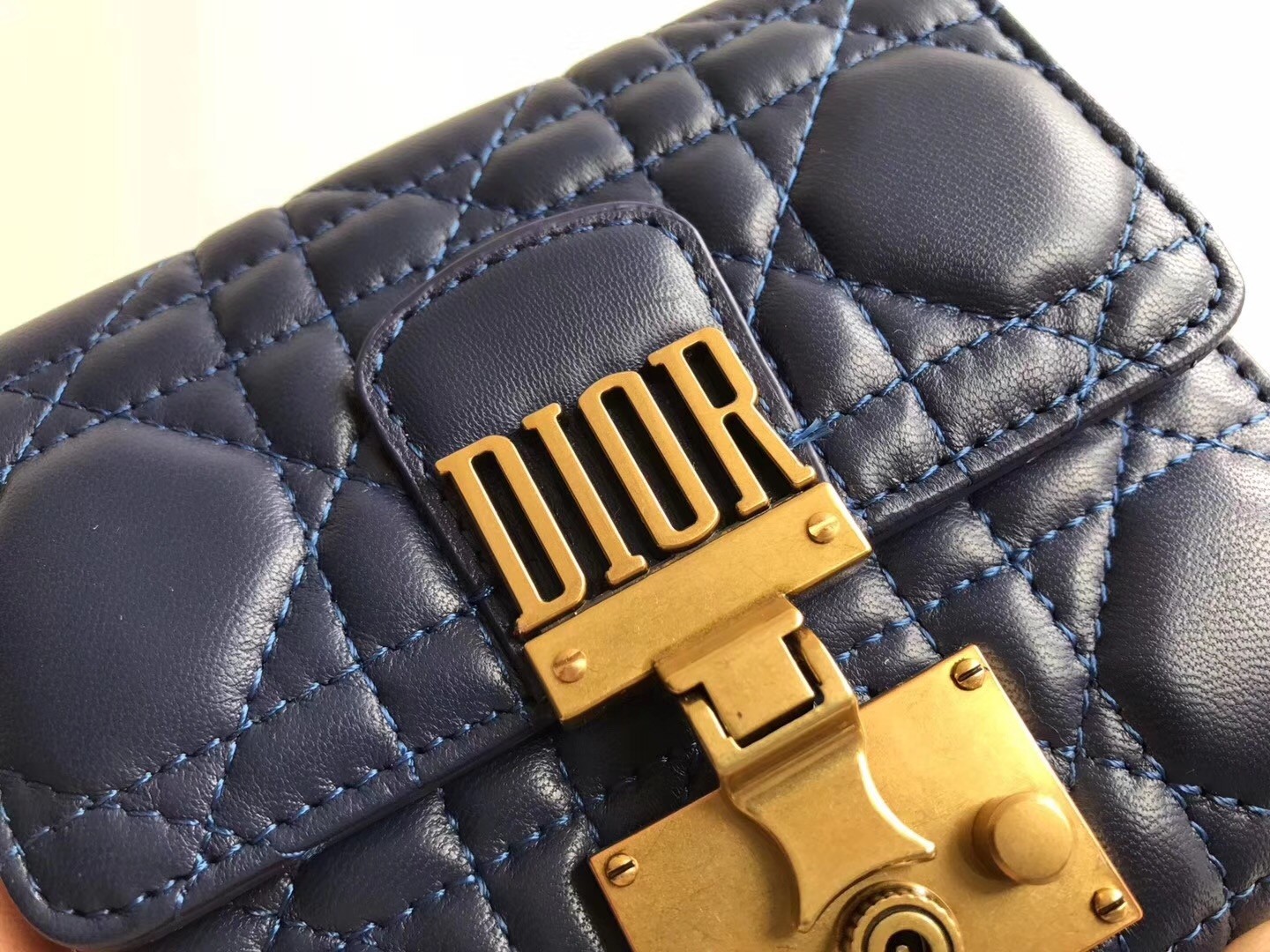 Dior French DiorAddict Wallet In Navy Blue Lambskin