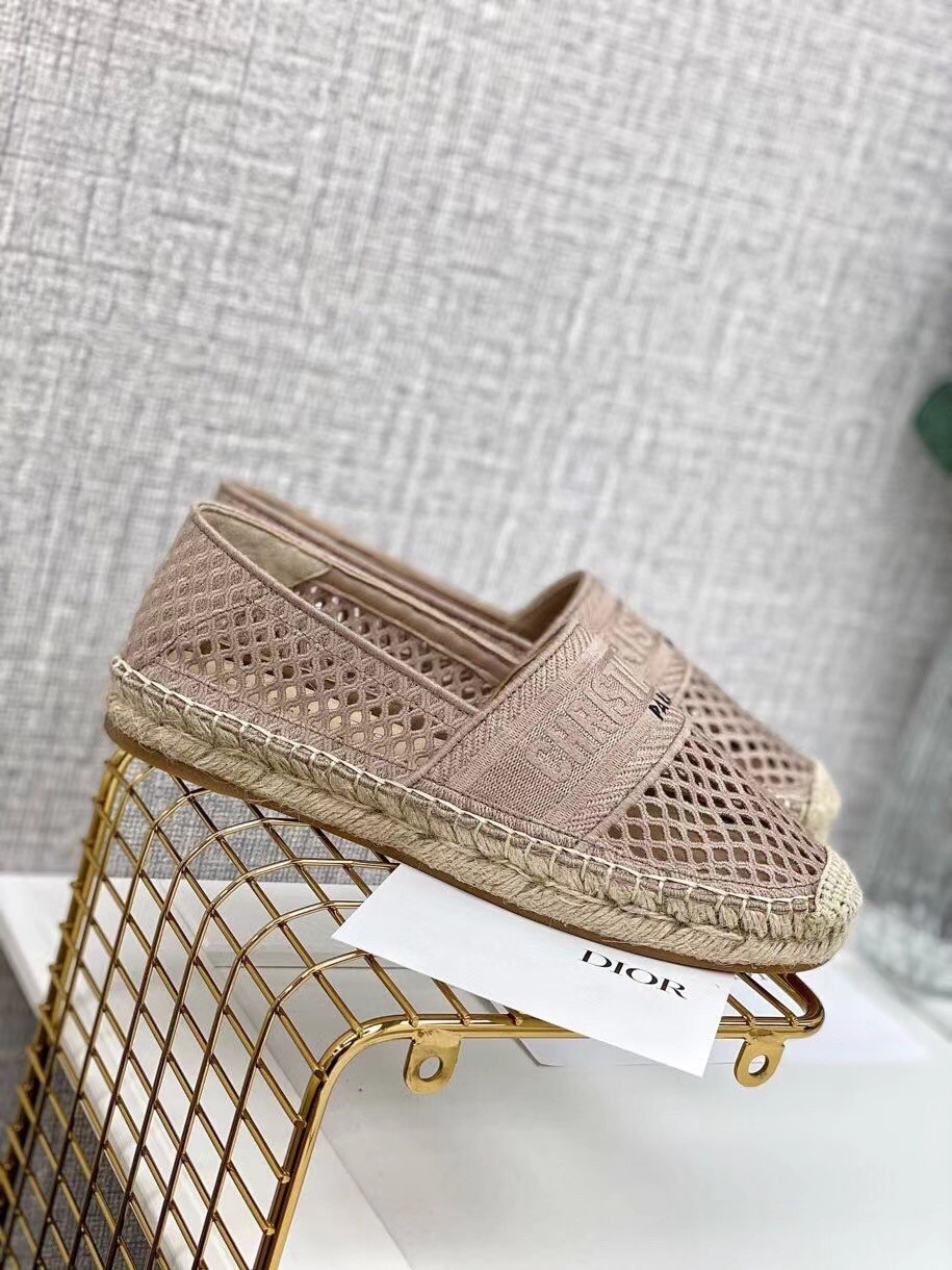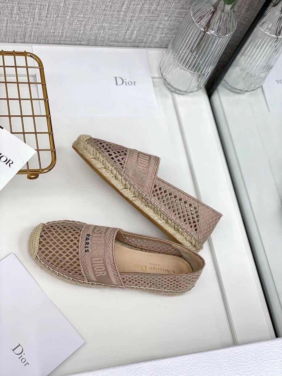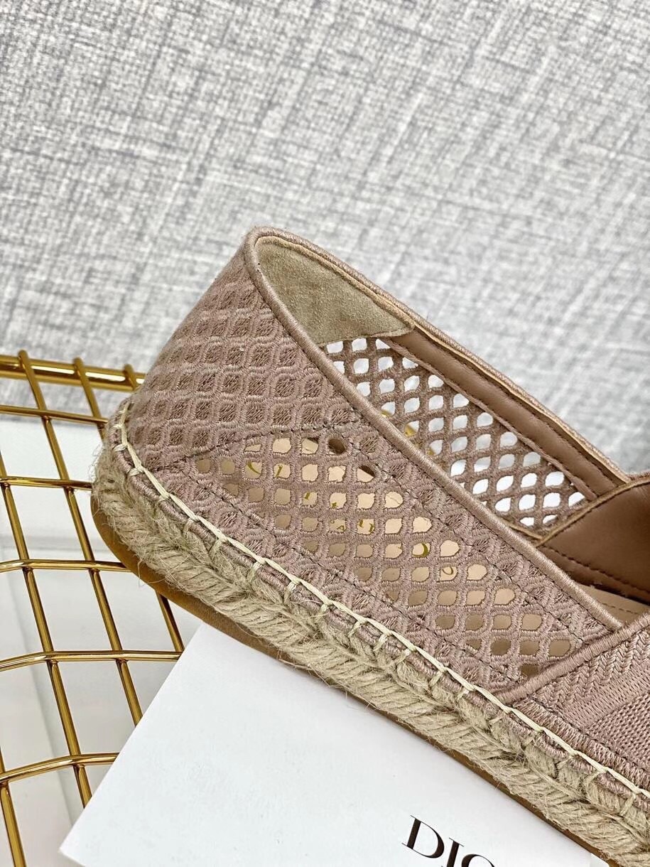 Dior Granville Espadrille In Nude Mesh Embroidery
