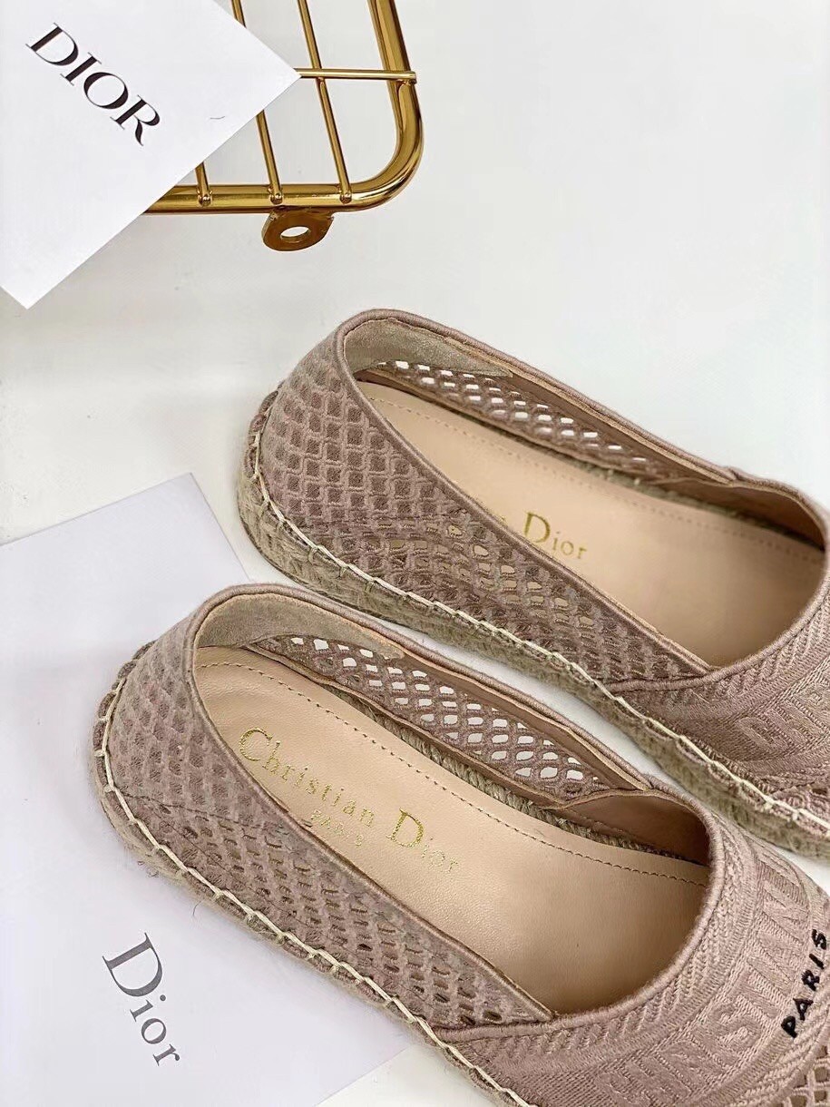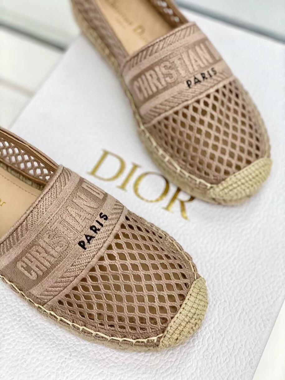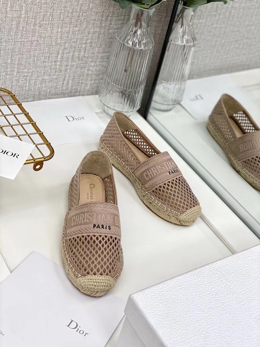 Dior Granville Espadrille In Nude Mesh Embroidery