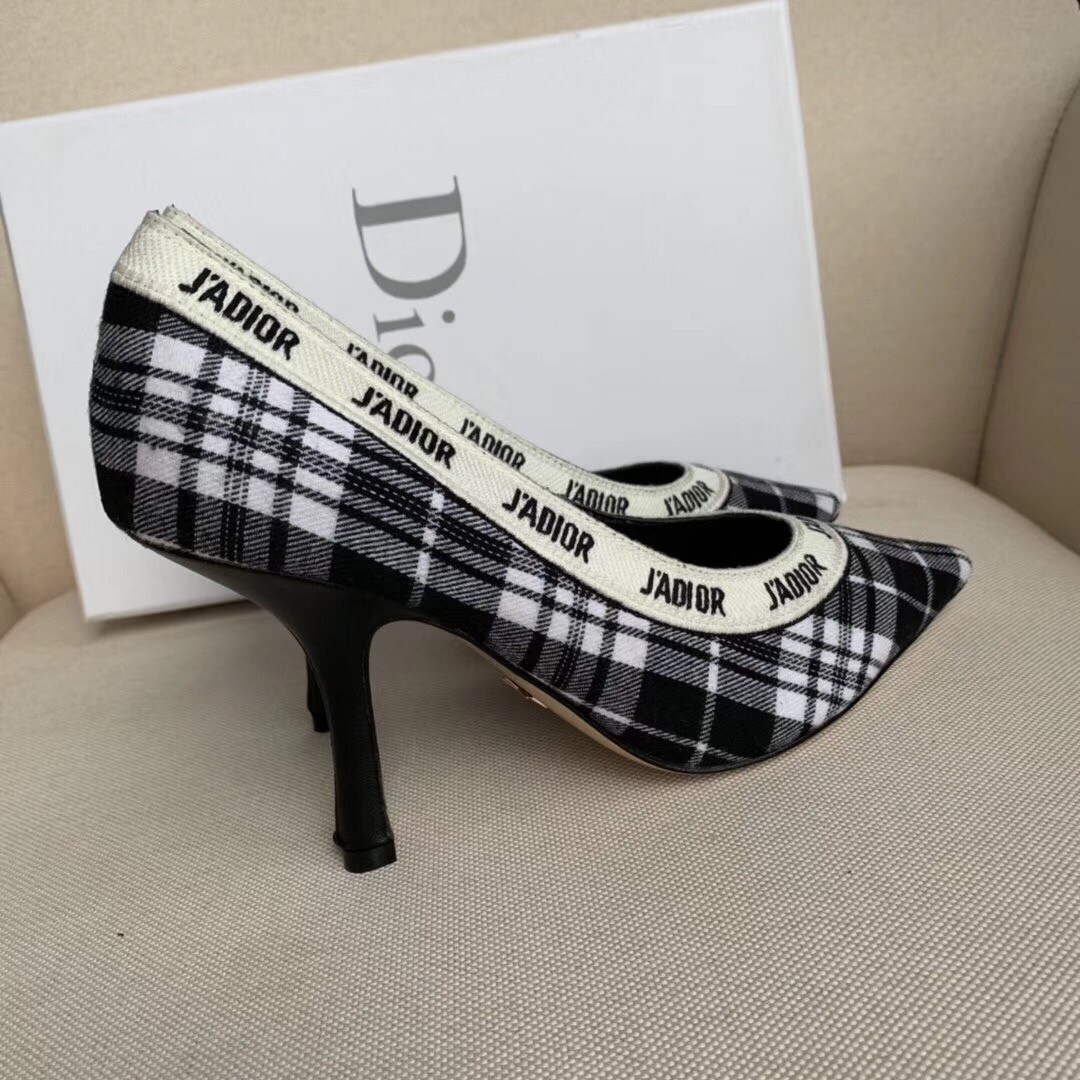Dior J'Adior 100MM Pumps In Black and White Tartan Fabric