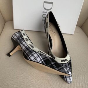 Dior J’Adior 65MM Pumps In Black and White Tartan Fabric