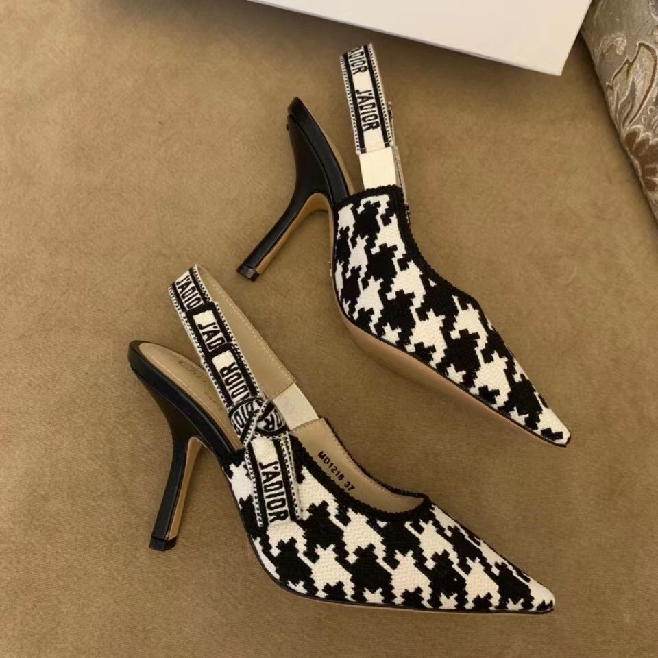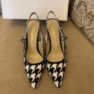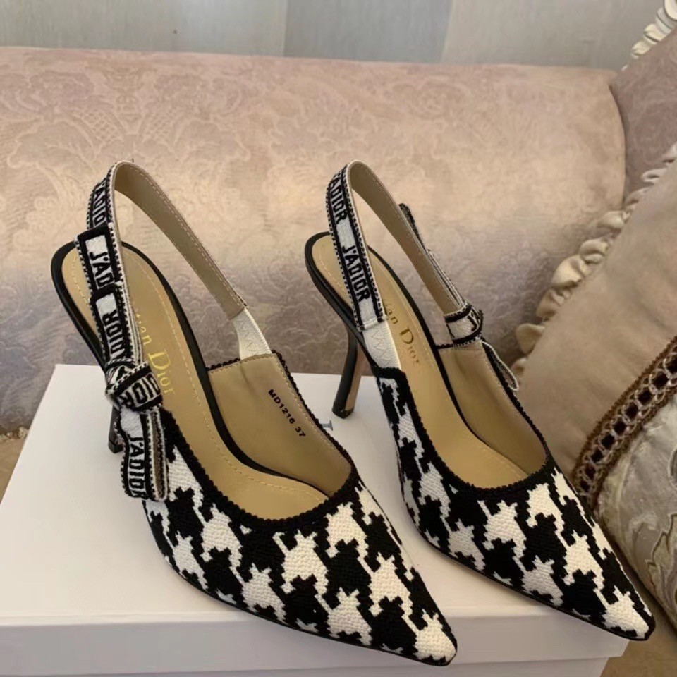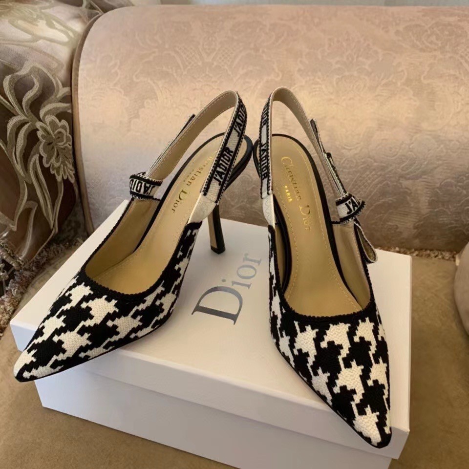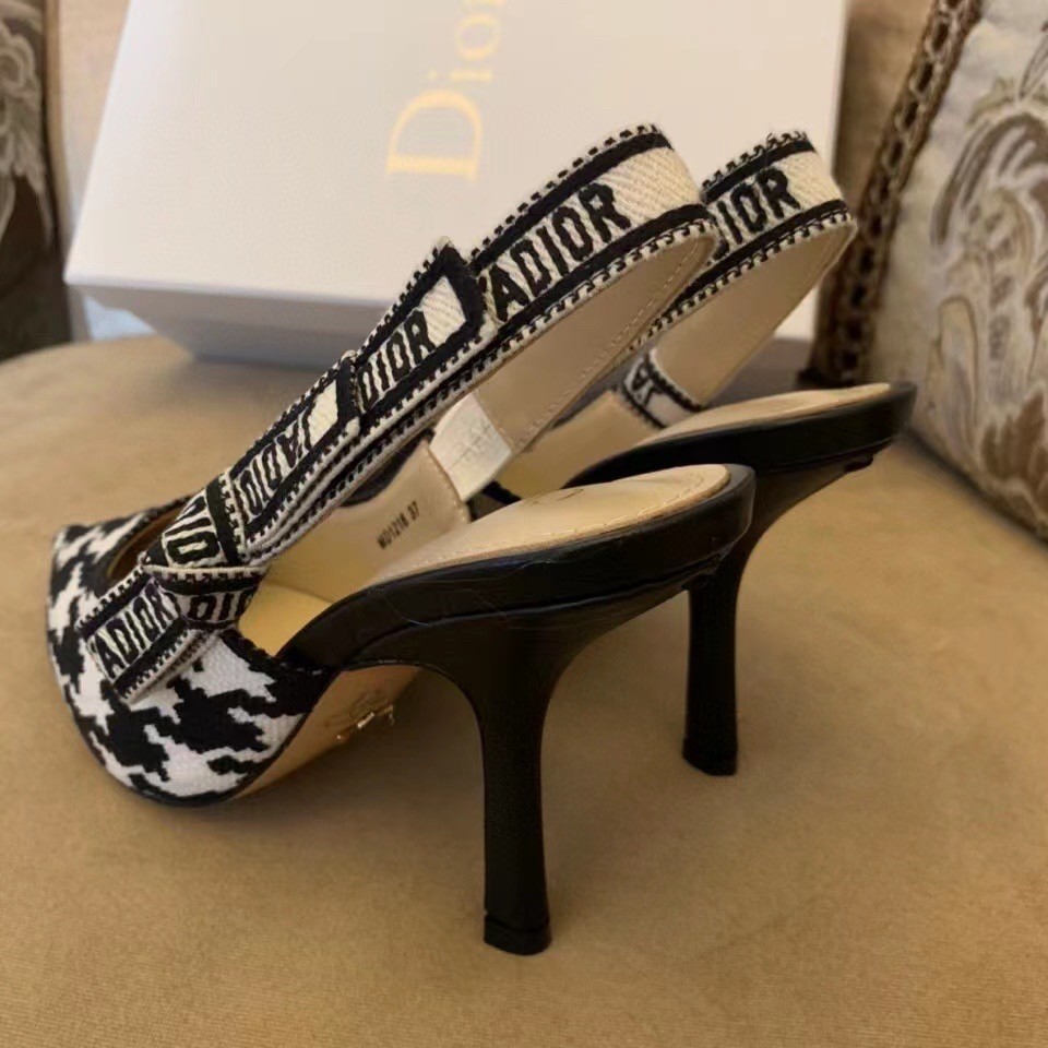 Dior J’Adior Slingback 100mm Pumps In Black Houndstooth Embroidery
