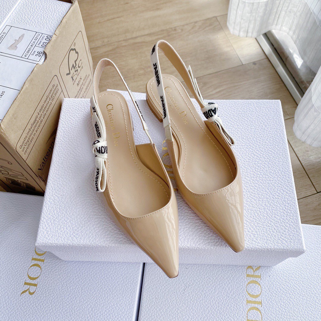 Dior J’Adior Slingback Ballerina Flats In Nude Patent Leather