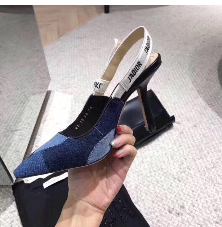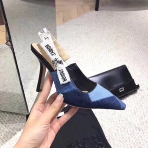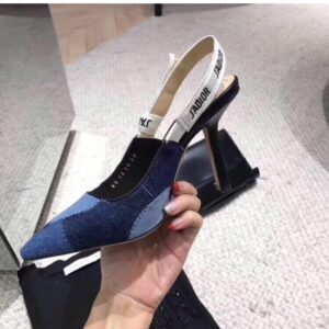 – Slingback pump in patchwork denim
