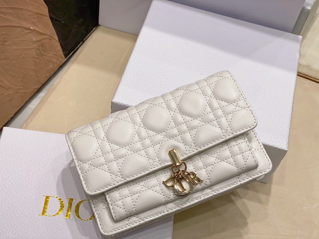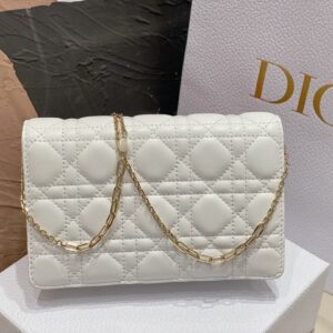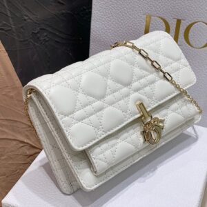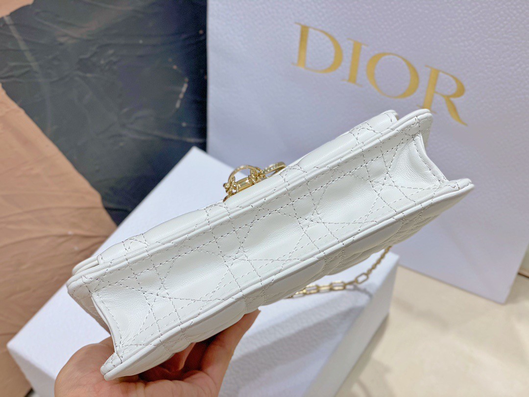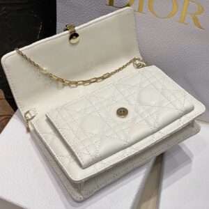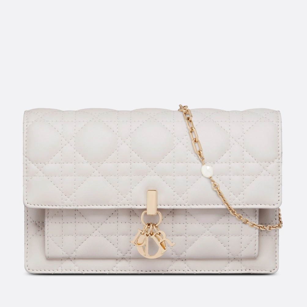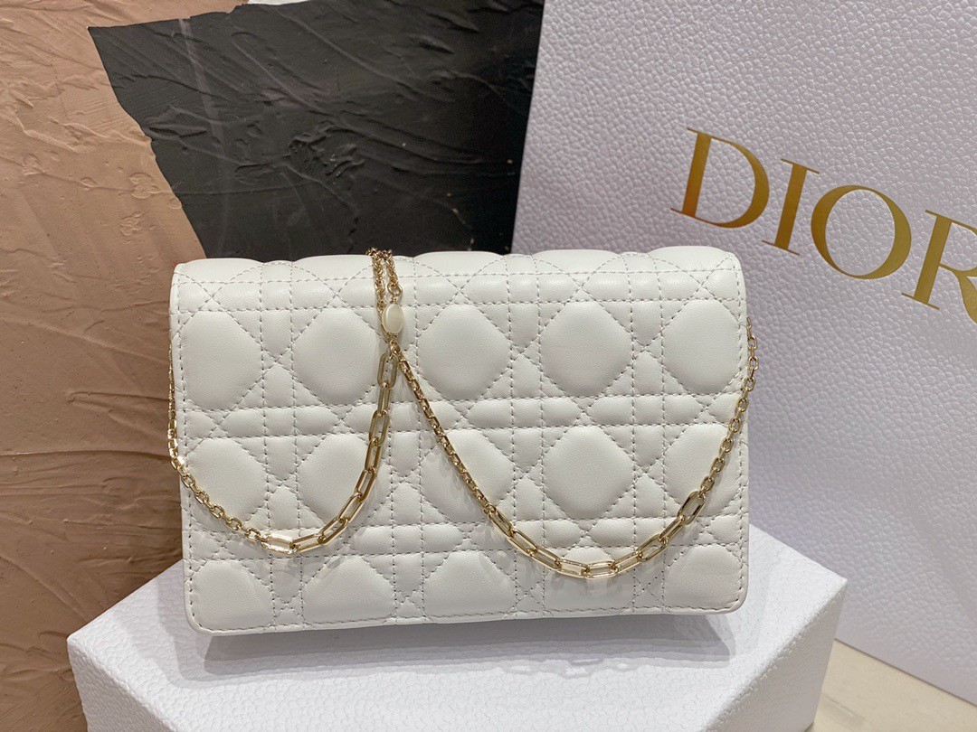 Dior Lady Dior Chain Pouch In White Cannage Lambskin