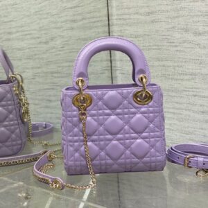 Dior Lady Dior Mini Bag with Chain in Lilas Cannage Lambskin