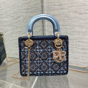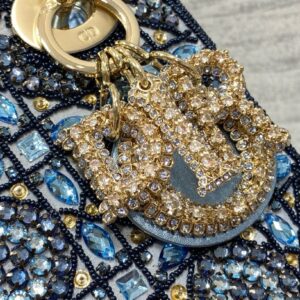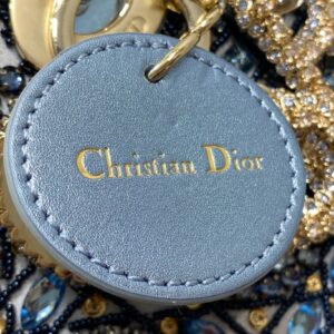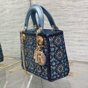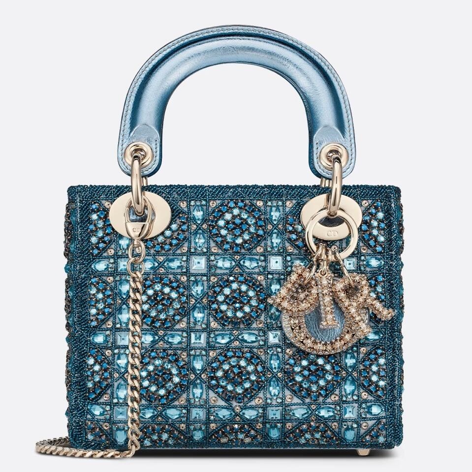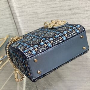 Dior Lady Dior Mini Chain Bag in Satin with Blue Bead Embroidery
