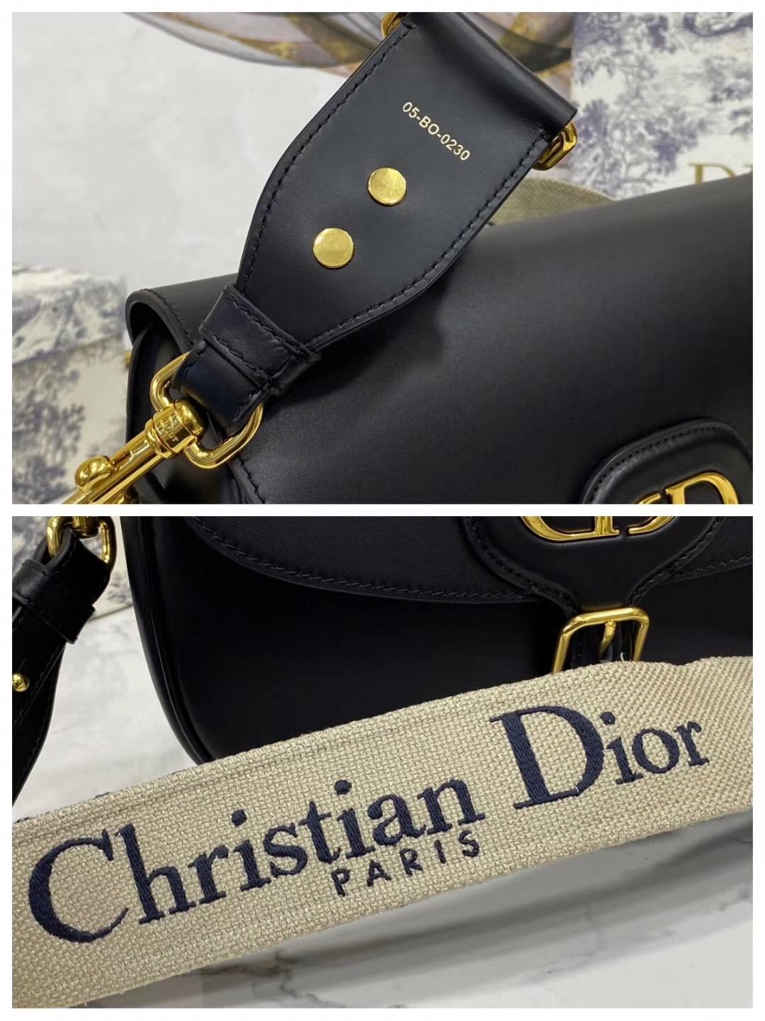 – Magnetic clasp with decorative ‘CD’ buckle on the front