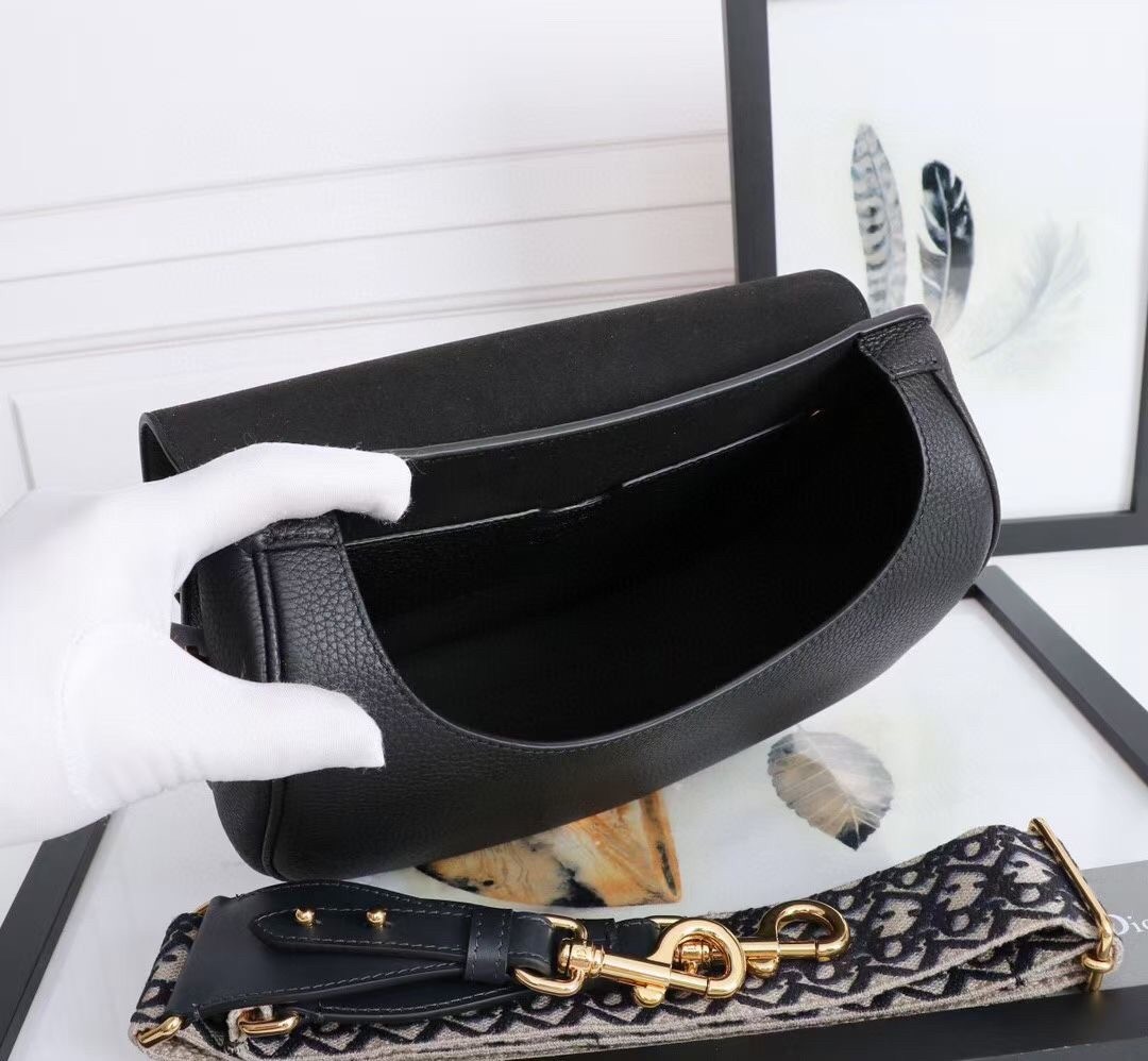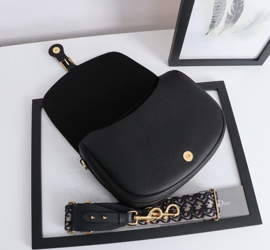 – Removable and adjustable shoulder strap with blue Dior Oblique embroidery