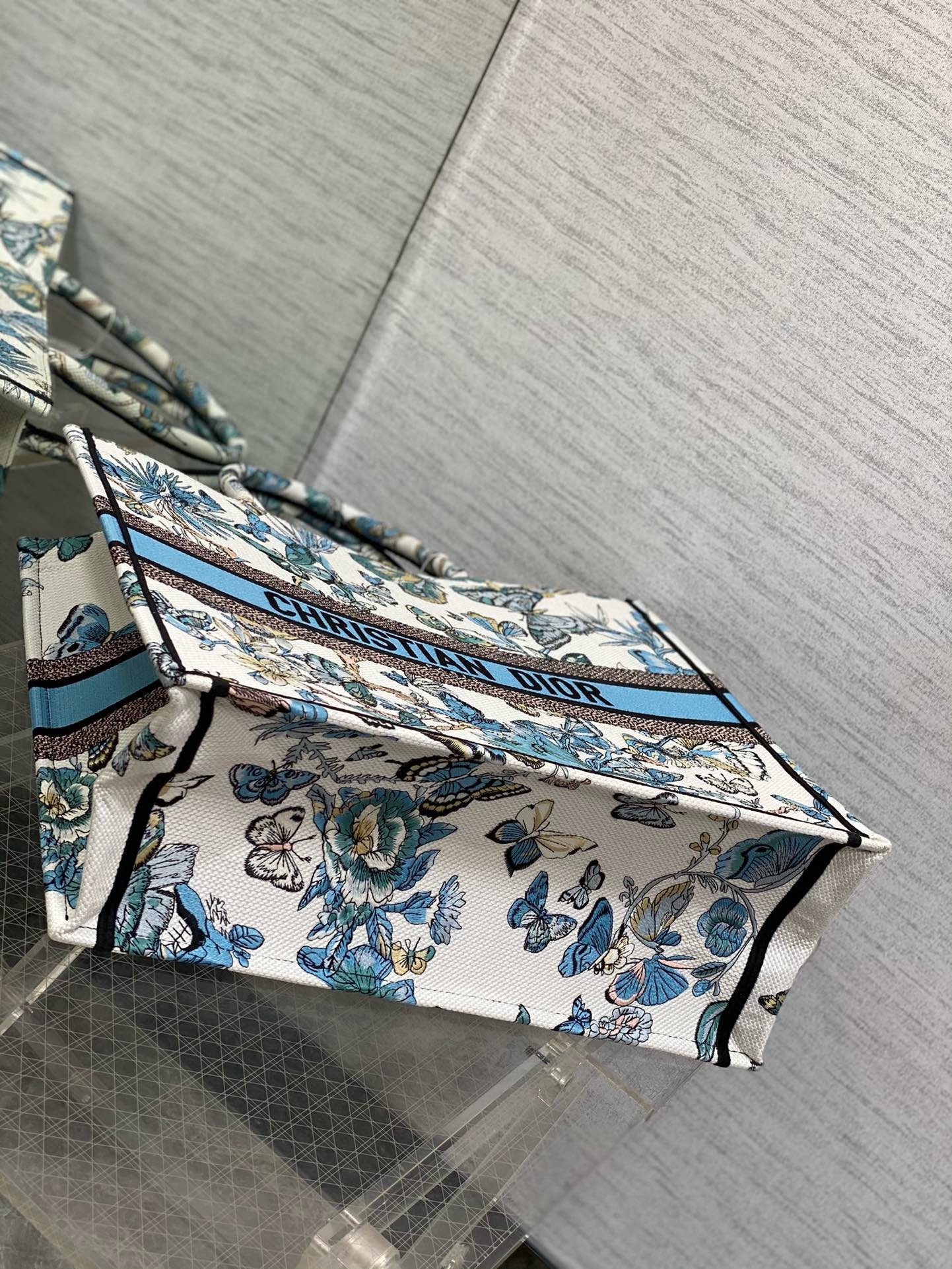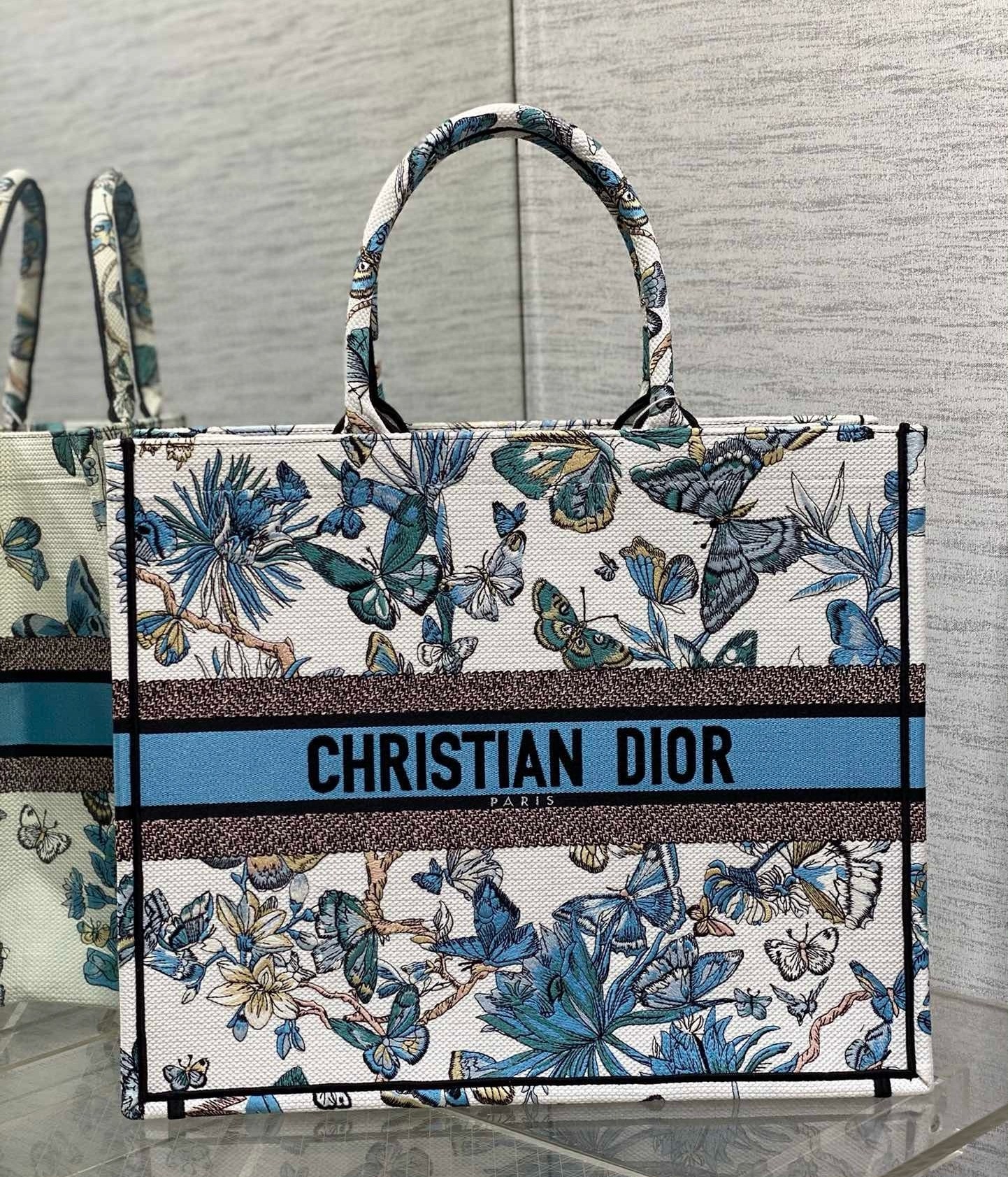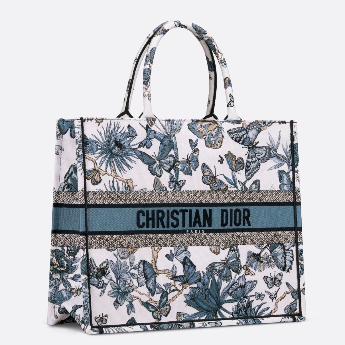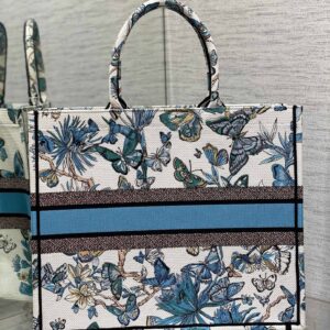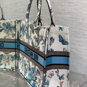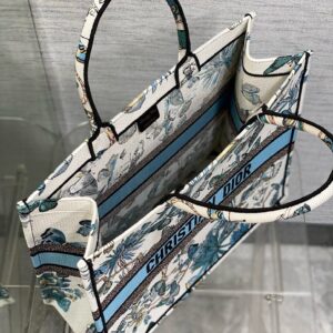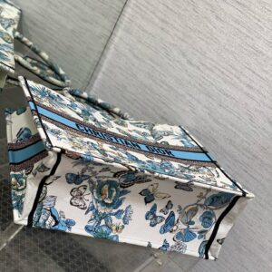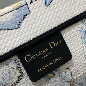 Dior Large Book Tote Bag in White and Blue Toile de Jouy Mexico Embroidery
