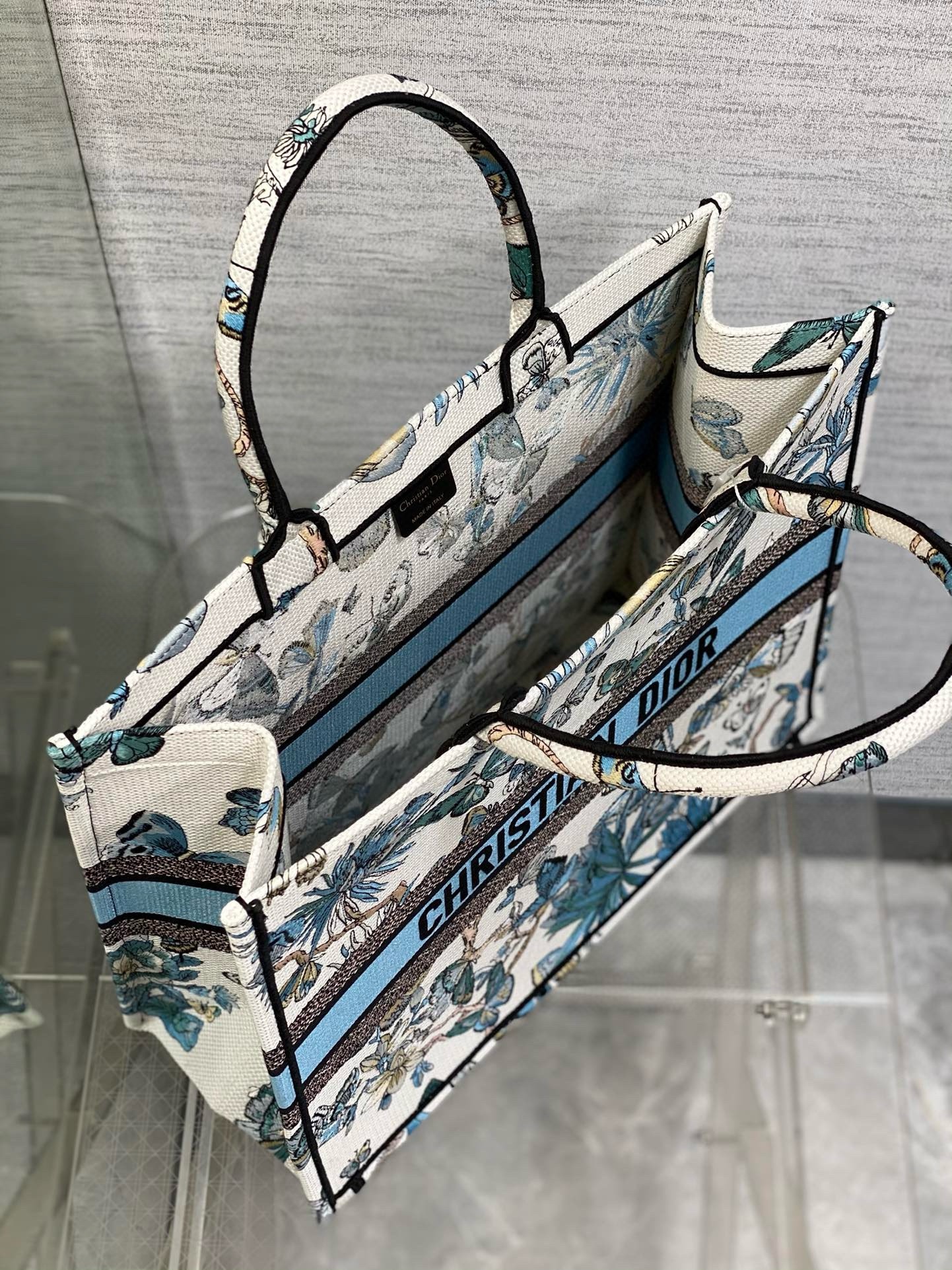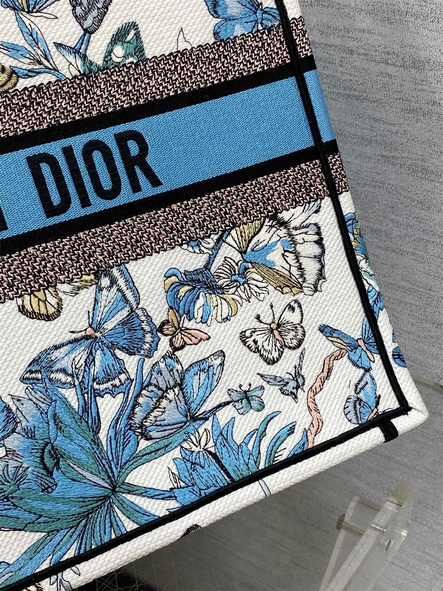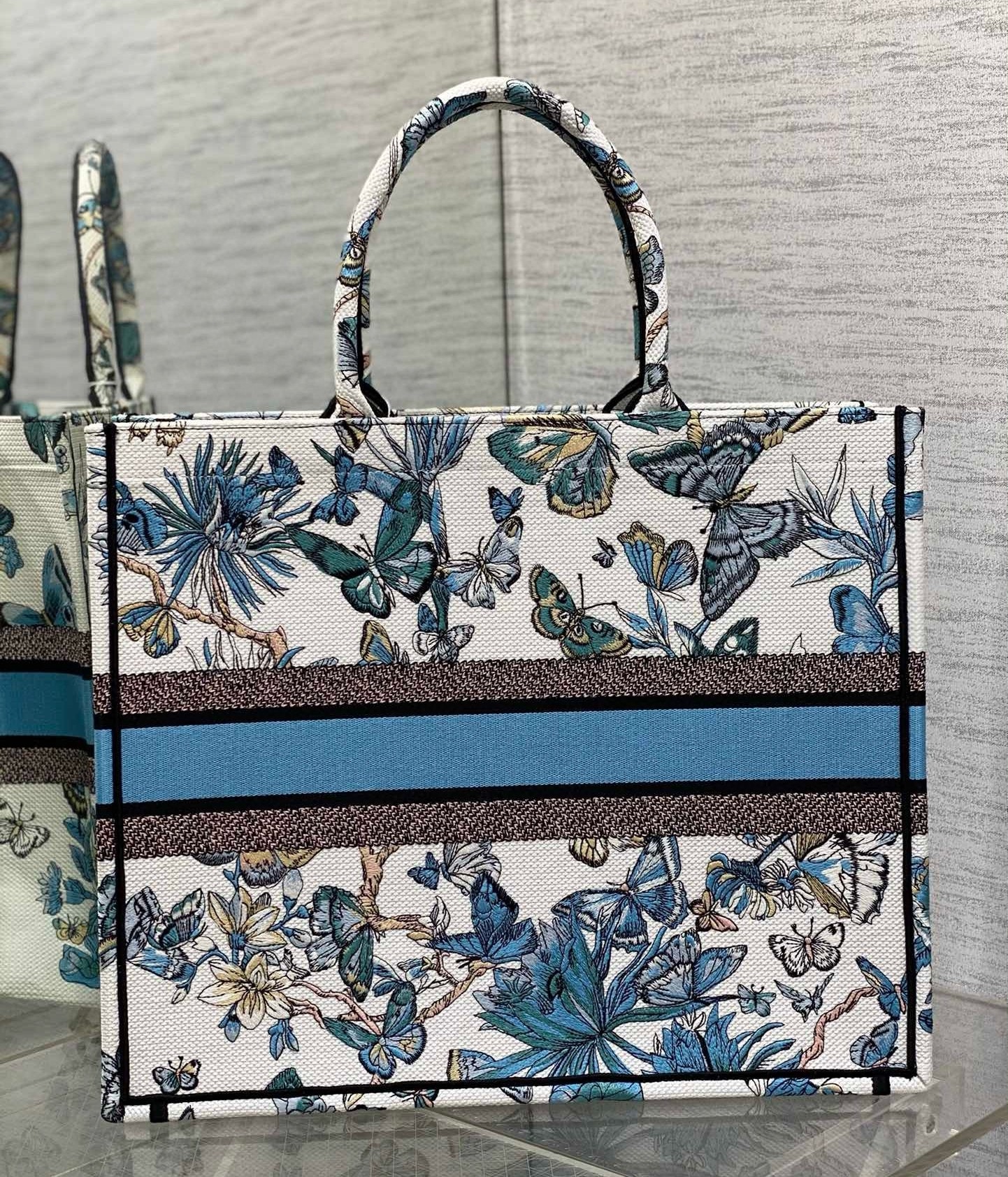 Dior Large Book Tote Bag in White and Blue Toile de Jouy Mexico Embroidery