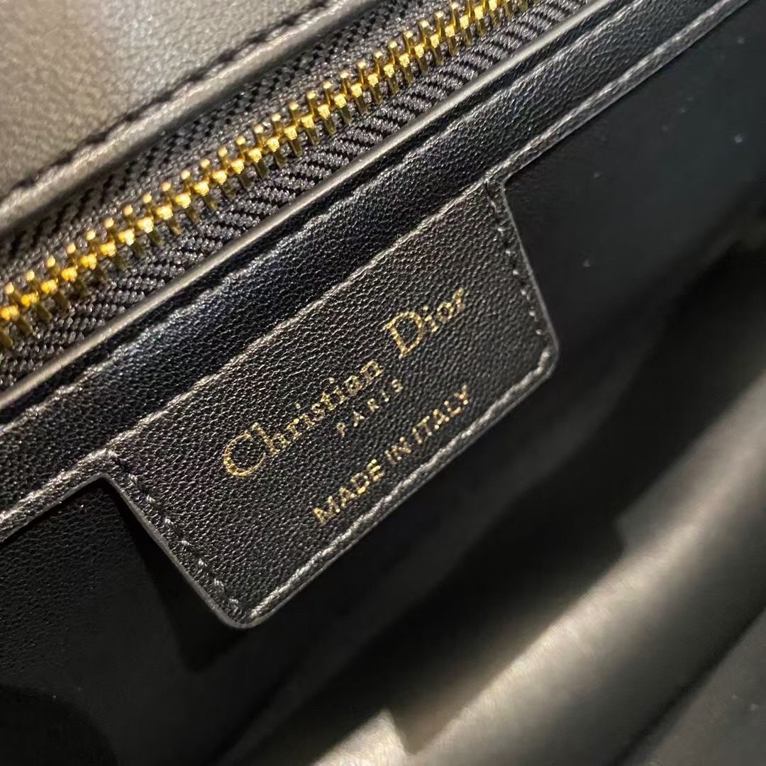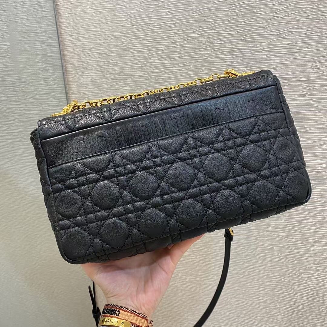 Dior Large Caro Bag In Black Cannage Calfskin