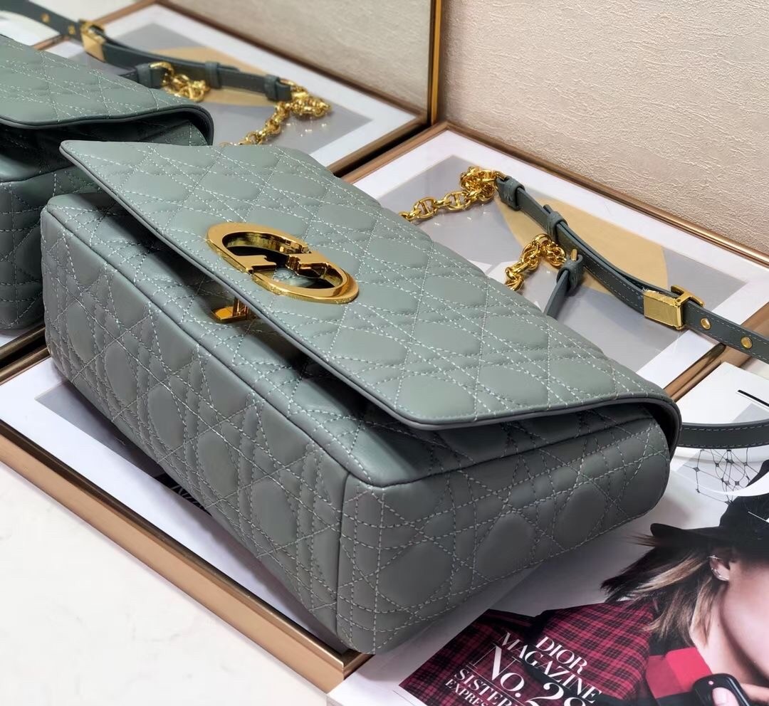 – Adjustable, removable ‘CD’ chain link strap with ‘Christian Dior’ military-inspired buckle
