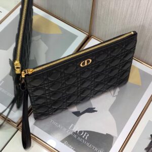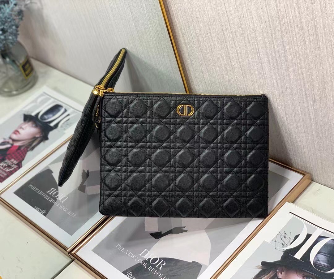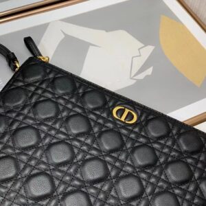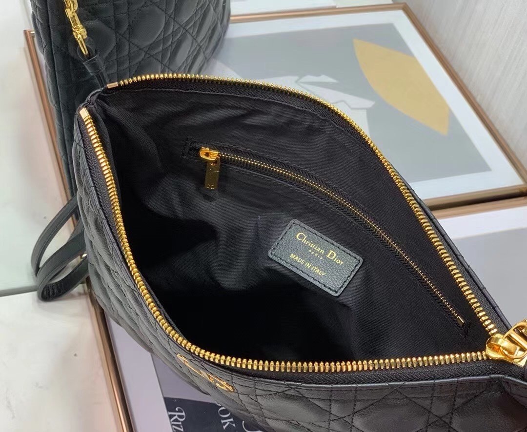 Dior Large Caro Daily Pouch In Black Calfskin