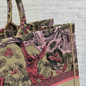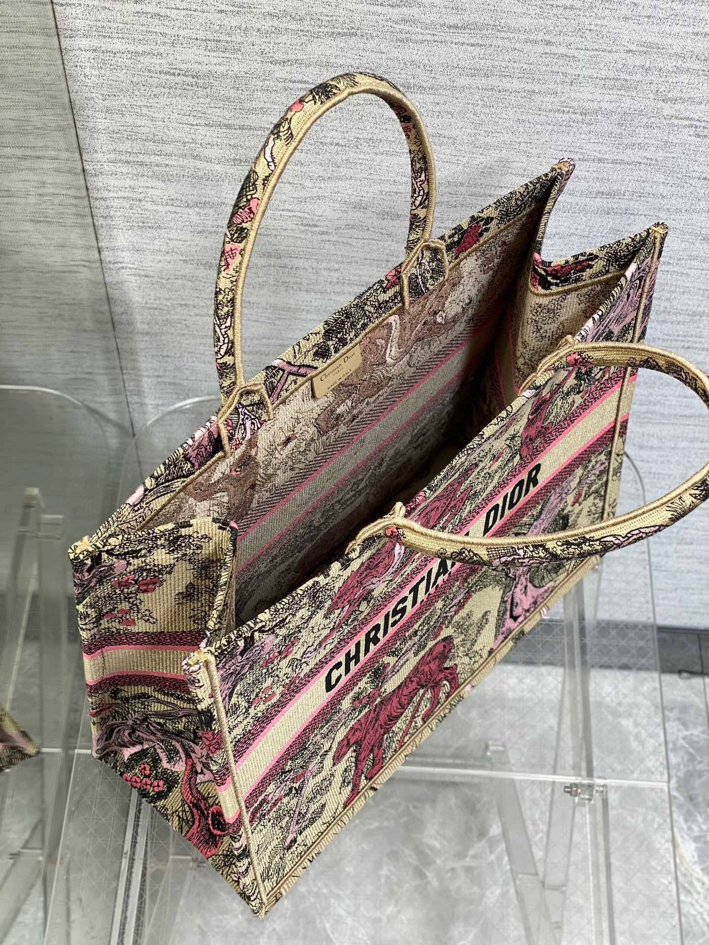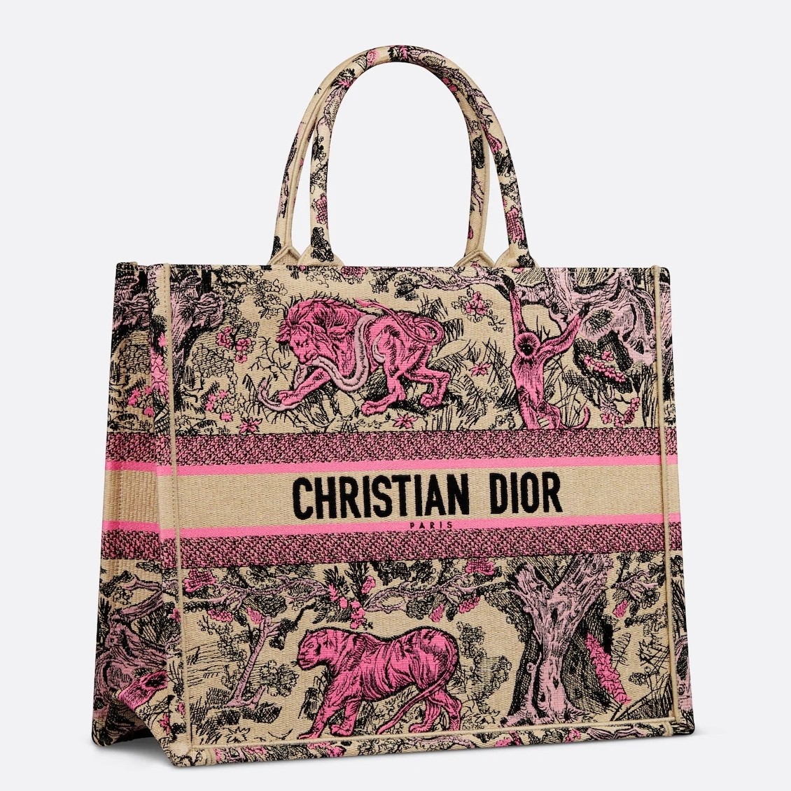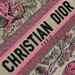 Dior Large Dioriviera Book Tote in Raffia with Pink Toile de Jouy Sauvage Embroidery