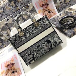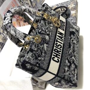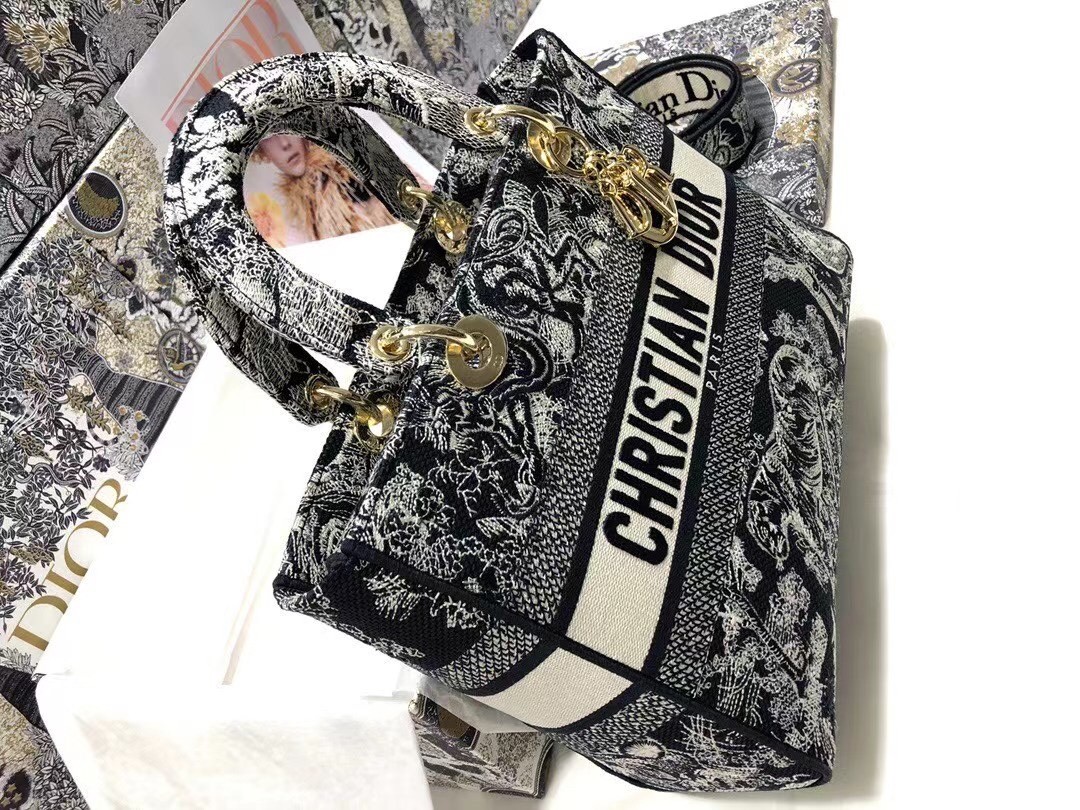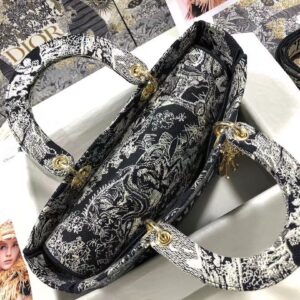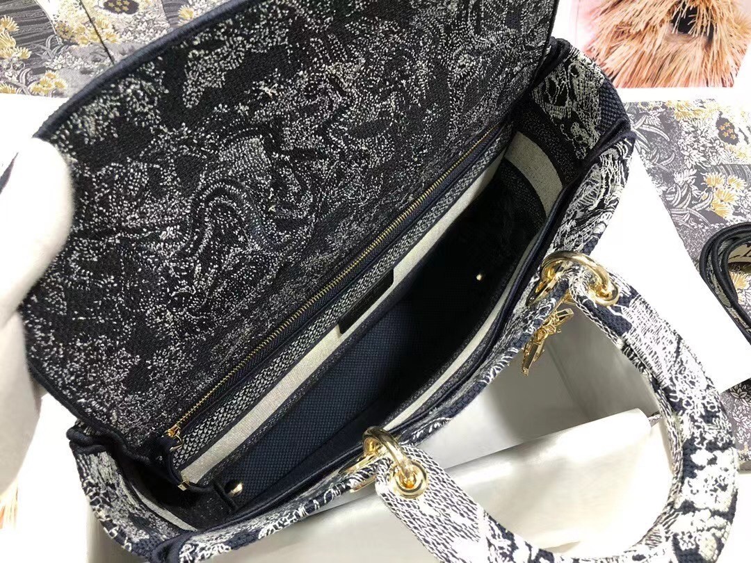 Dior Large Lady D-Lite Bag In Blue Toile de Jouy Reverse Embroidery