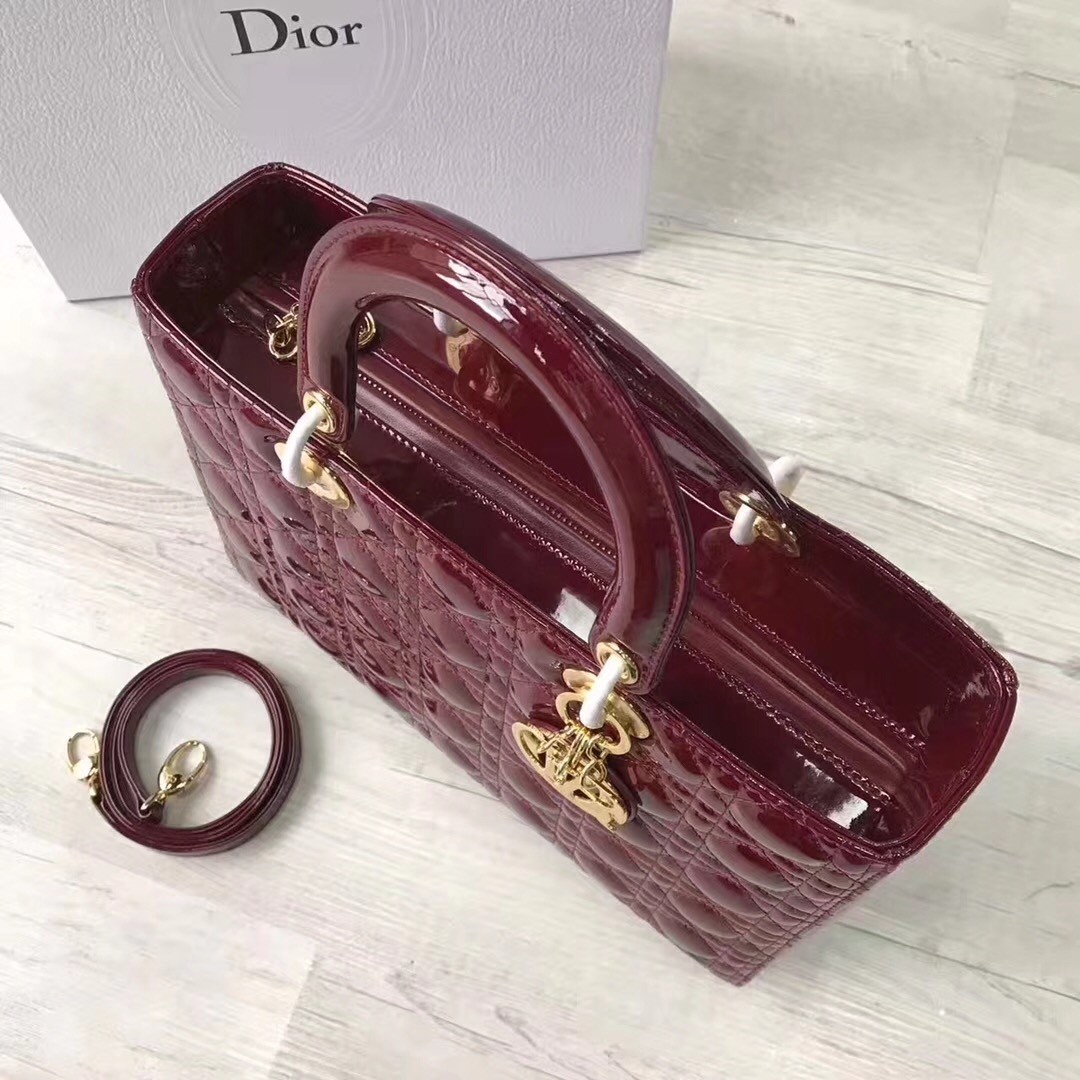 Dior Large Lady Dior Bag In Bordeaux Patent Leather