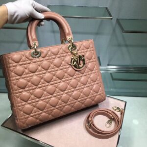 Dior Large Lady Dior Bag In Powder Cannage Lambskin