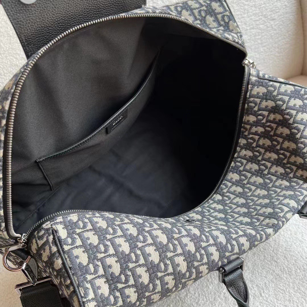 Dior Lingot 50 Duffle Bag In Black Oblique Jacquard