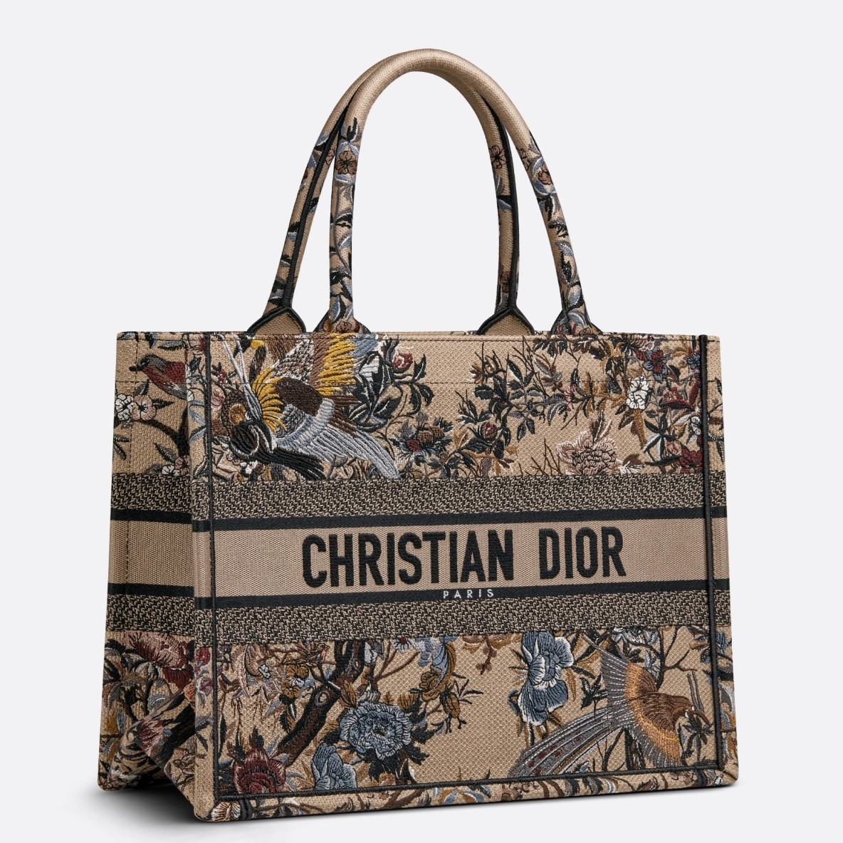 Dior Medium Book Tote Bag In Beige Jardin d’Hiver Embroidery