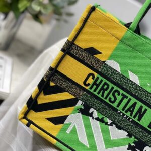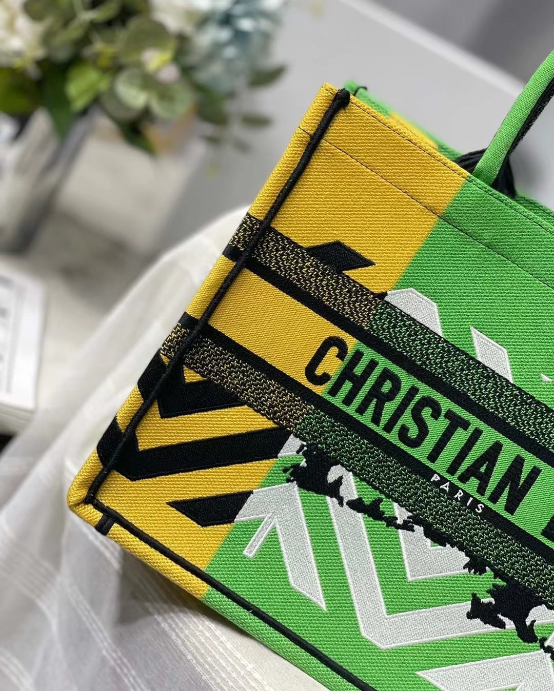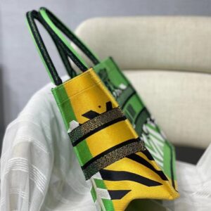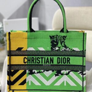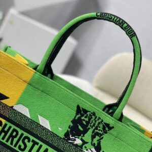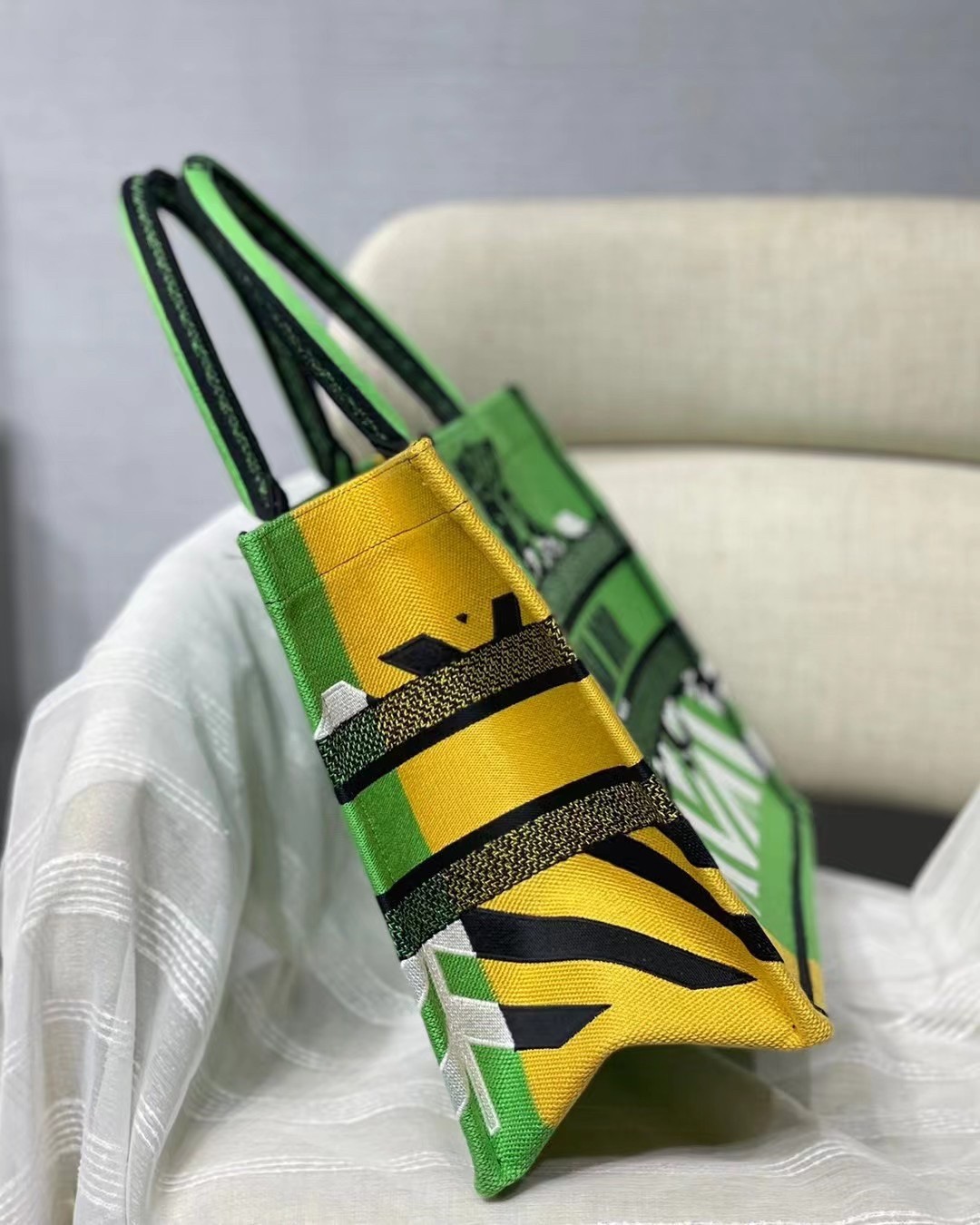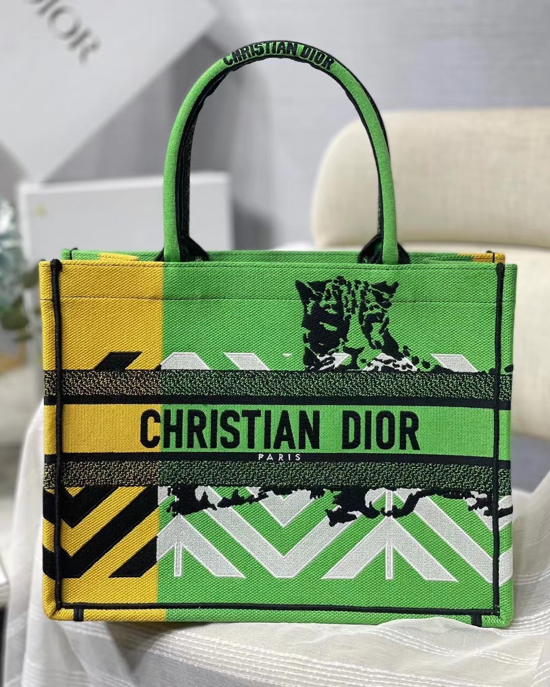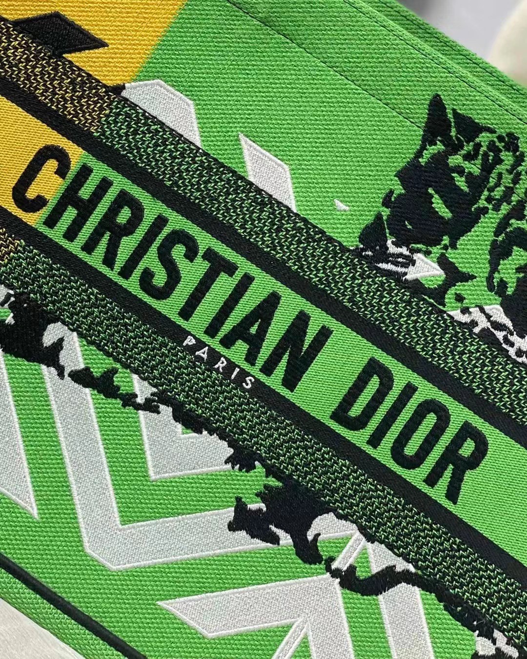 Dior Medium Book Tote Bag In Green D-Jungle Pop Embroidery