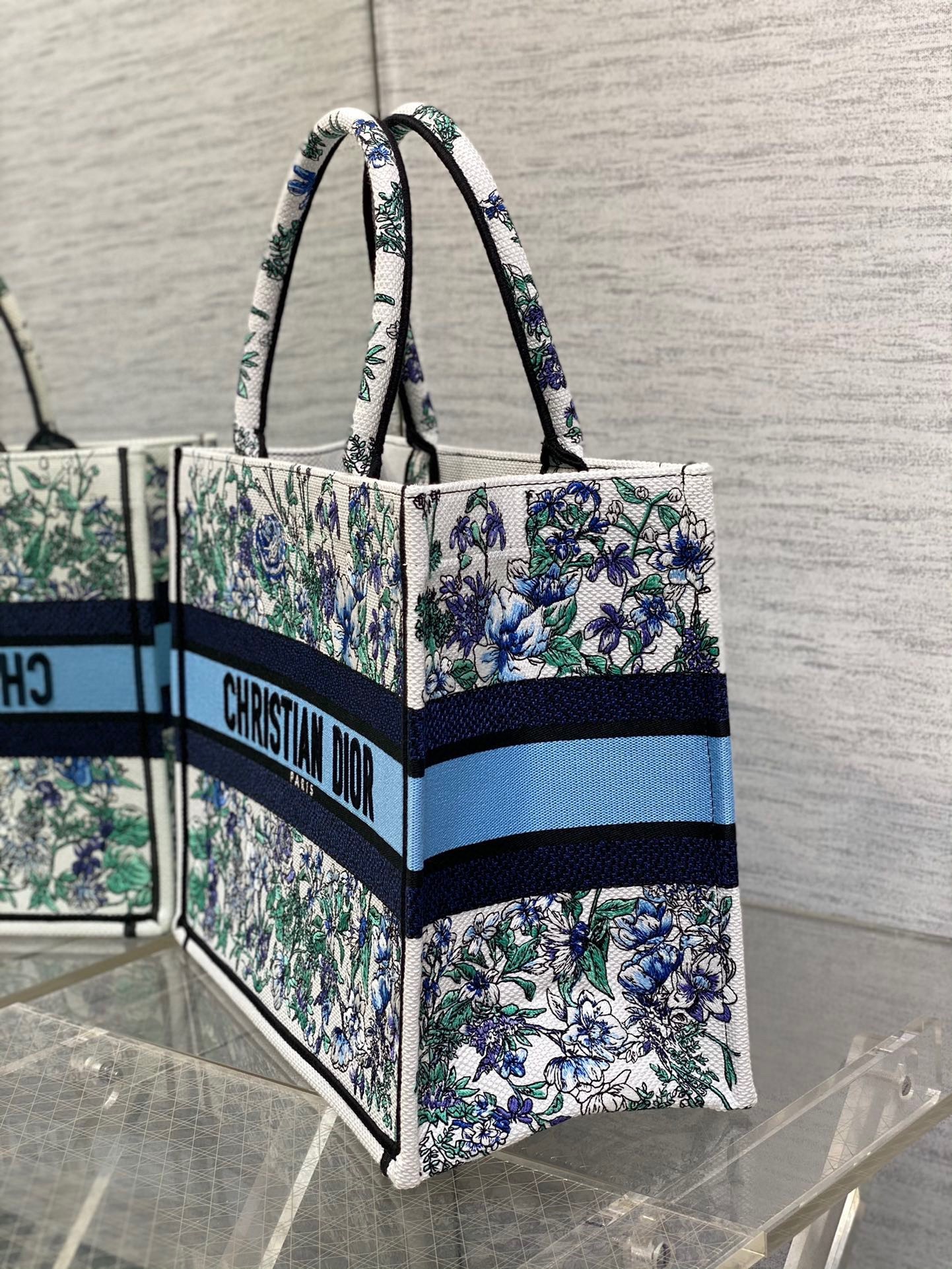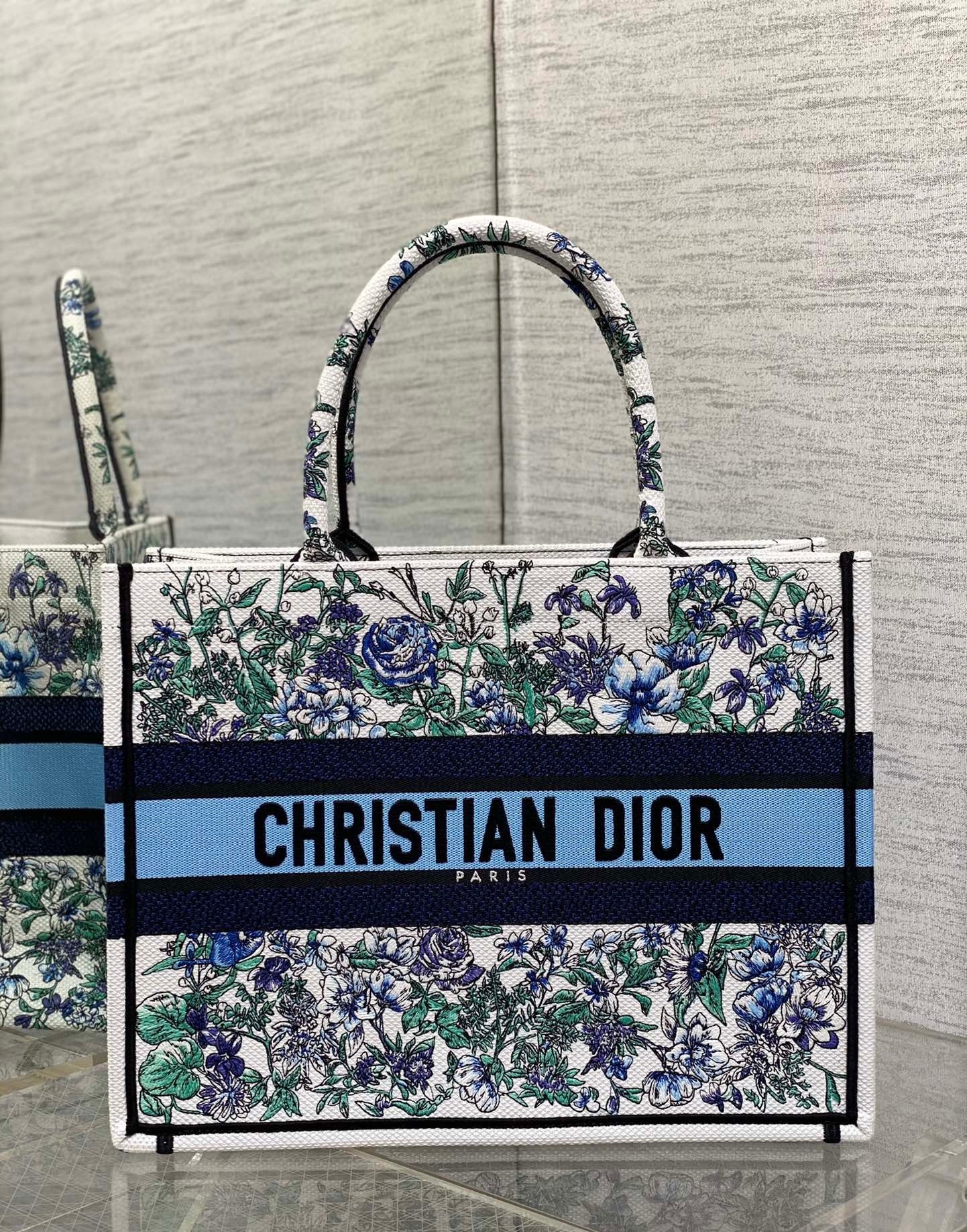 Dior Medium Book Tote Bag In Multicolor Flowers Constellation Embroidery