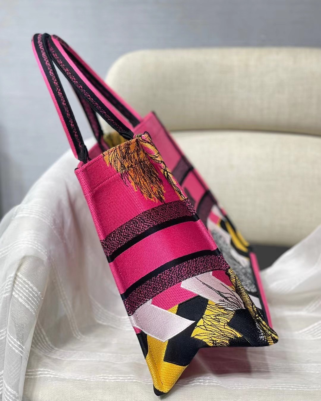 Dior Medium Book Tote Bag In Toile de Jouy Zoom Pop Embroidery