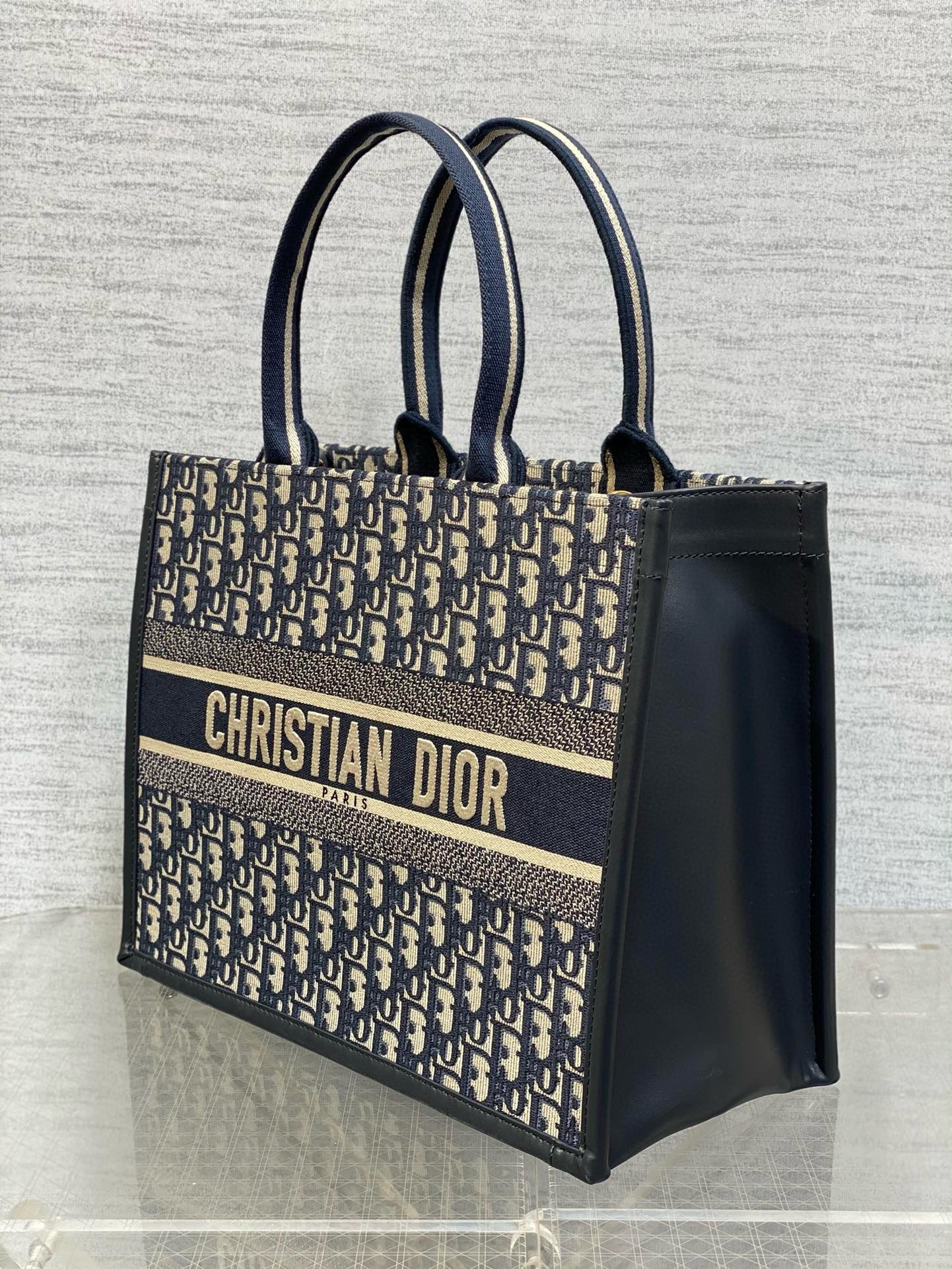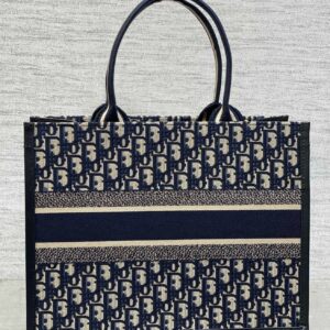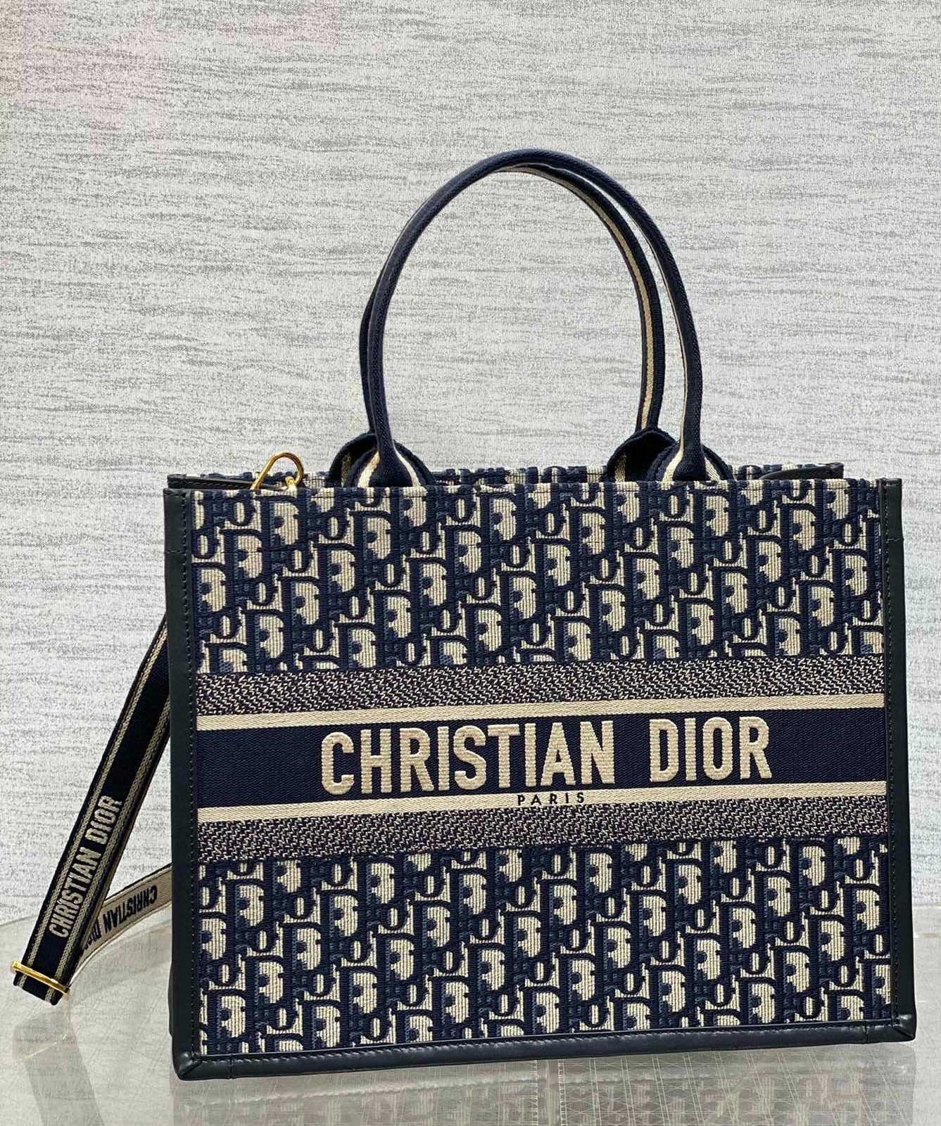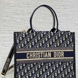Dior Medium Book Tote Bag with Strap in Blue Dior Oblique Canvas