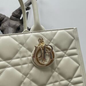 Dior Medium Book Tote Bag with Strap in White Macrocannage Calfskin