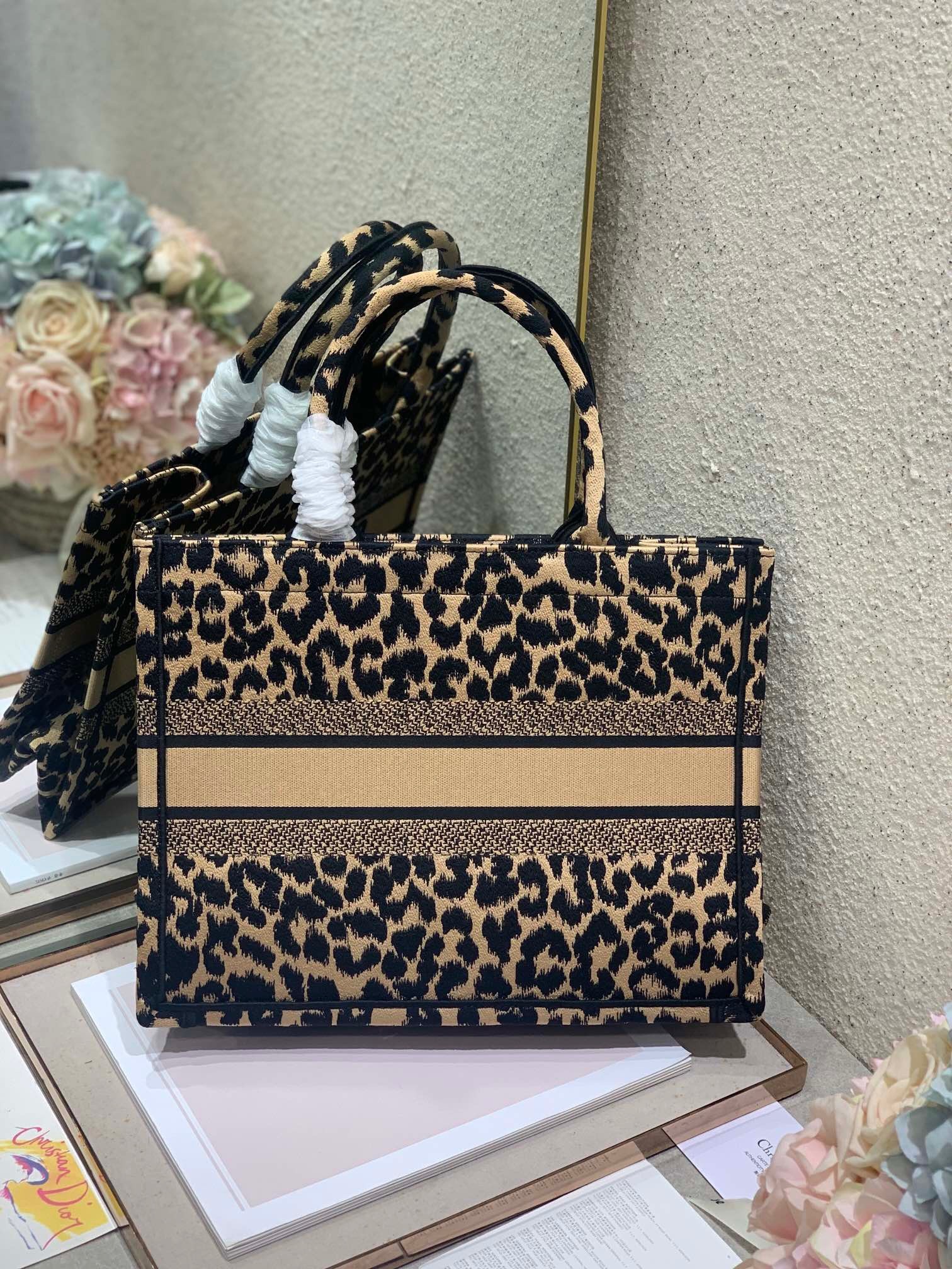 Dior Medium Book Tote In Beige Multicolor Mizza Embroidery