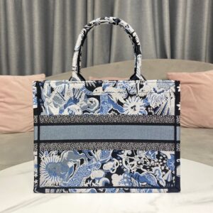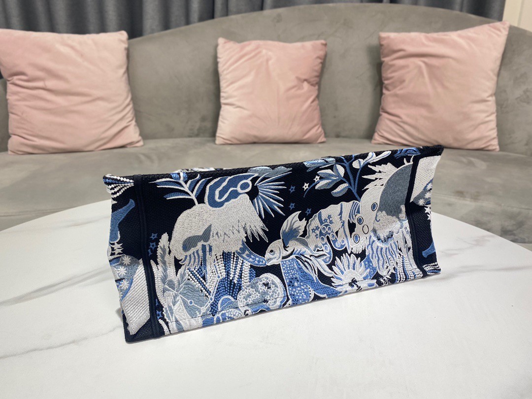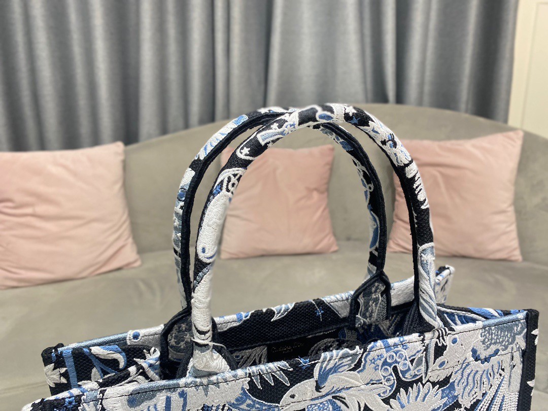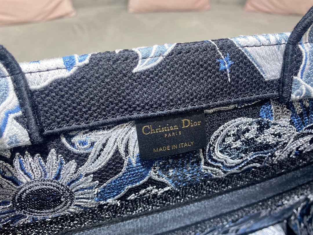 Dior Medium Book Tote In Blue Zodiac Fantastico Embroidery