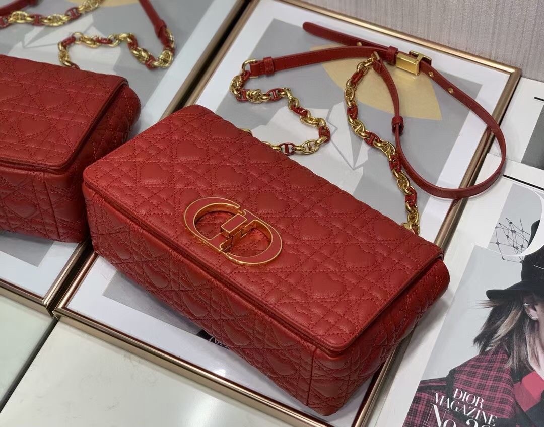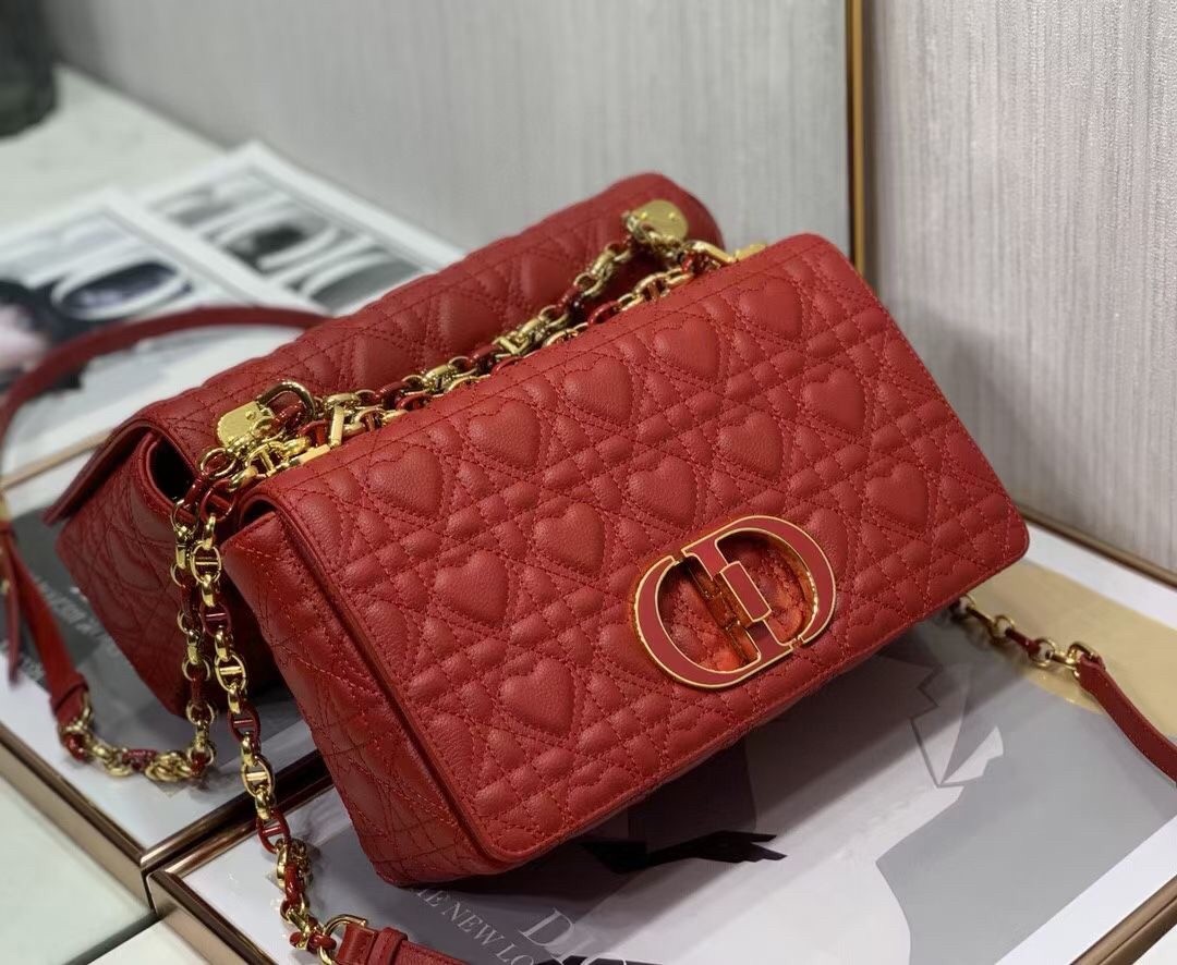 Dior Medium Dioramour Caro Red Bag with Heart Motif