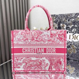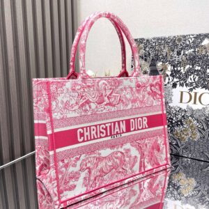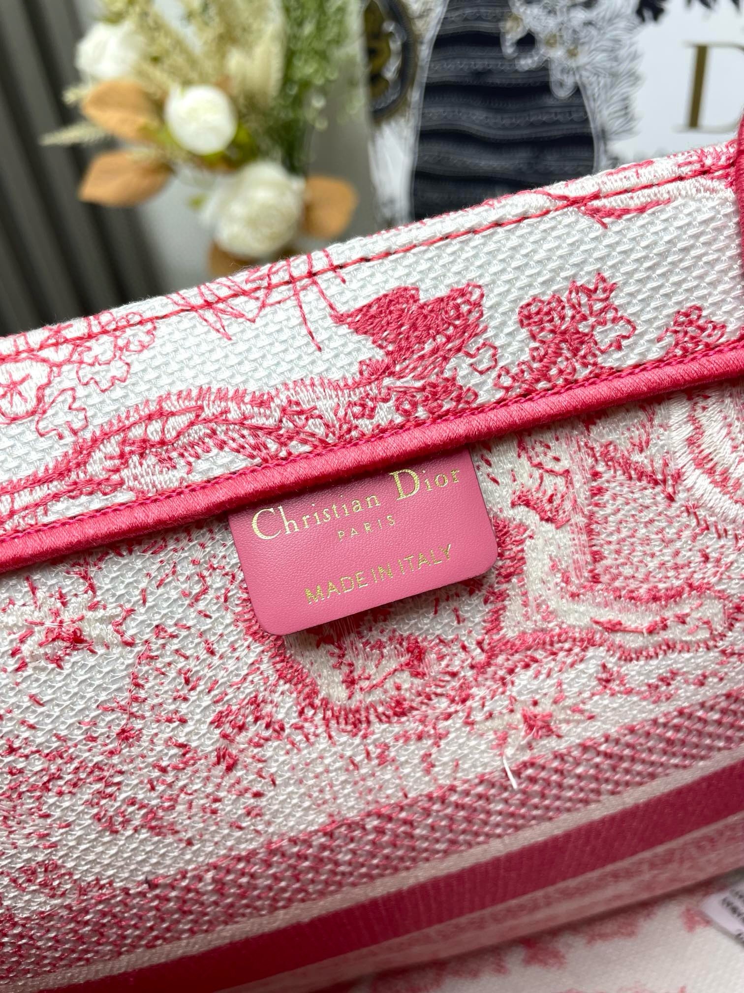 Dior Medium Dioriviera Book Tote in Pink Toile de Jouy Embroidery