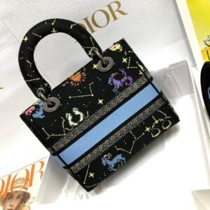 Dior Medium Lady D-Lite Bag In Black Pixel Zodiac Embroidery