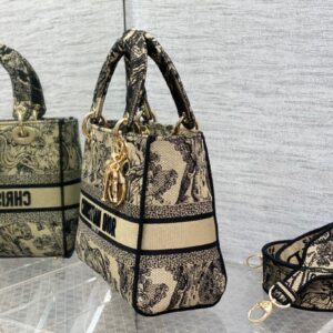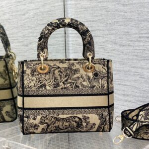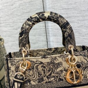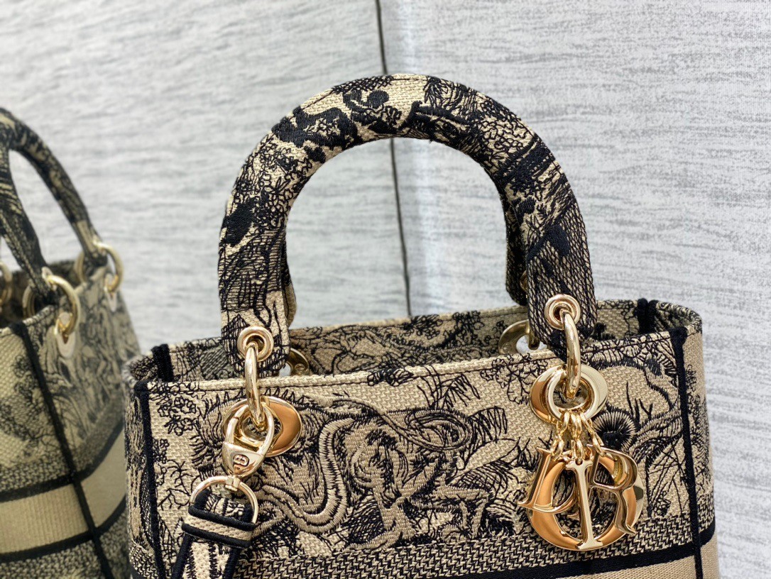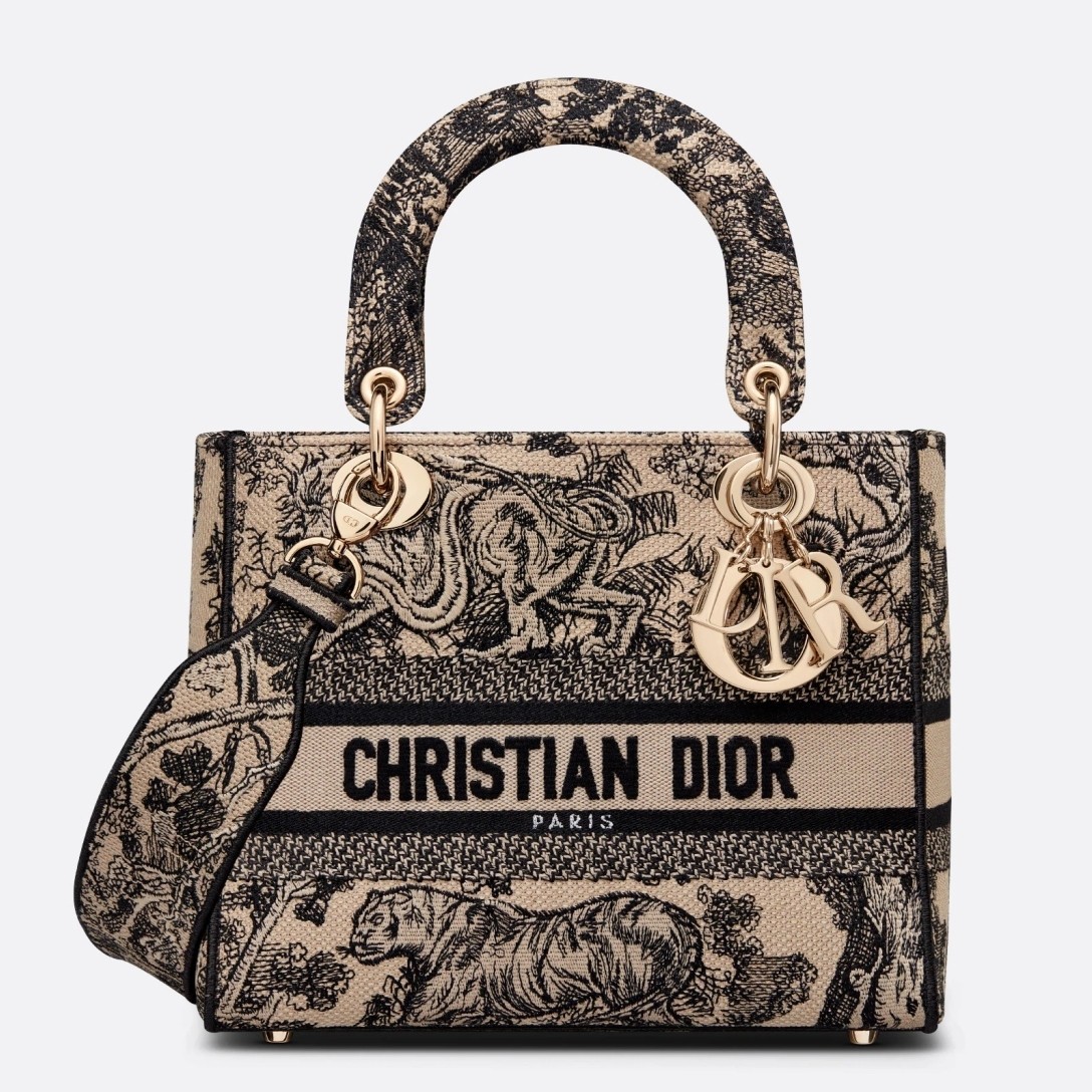 Dior Medium Lady D-Lite Bag In Brown Toile de Jouy Embroidery