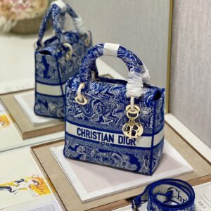 Dior Medium Lady D-Lite Bag In Fluorescent Blue Toile de Jouy Reverse Embroidery