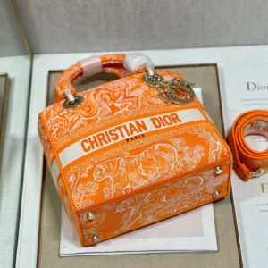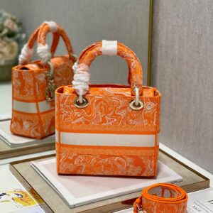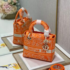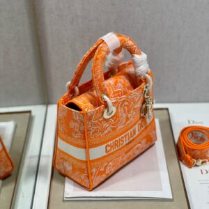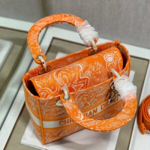 Dior Medium Lady D-Lite Bag In Fluorescent Orange Toile de Jouy Reverse Embroidery