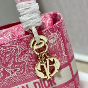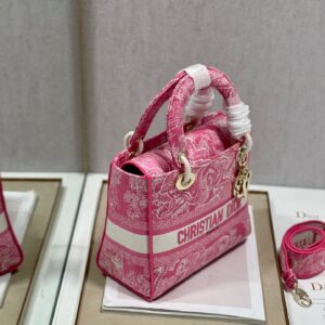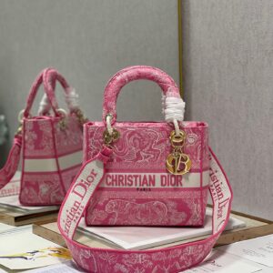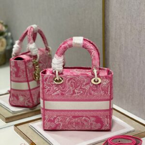 Dior Medium Lady D-Lite Bag In Fluorescent Pink Toile de Jouy Reverse Embroidery
