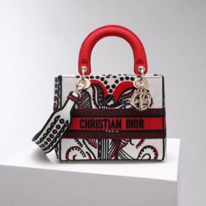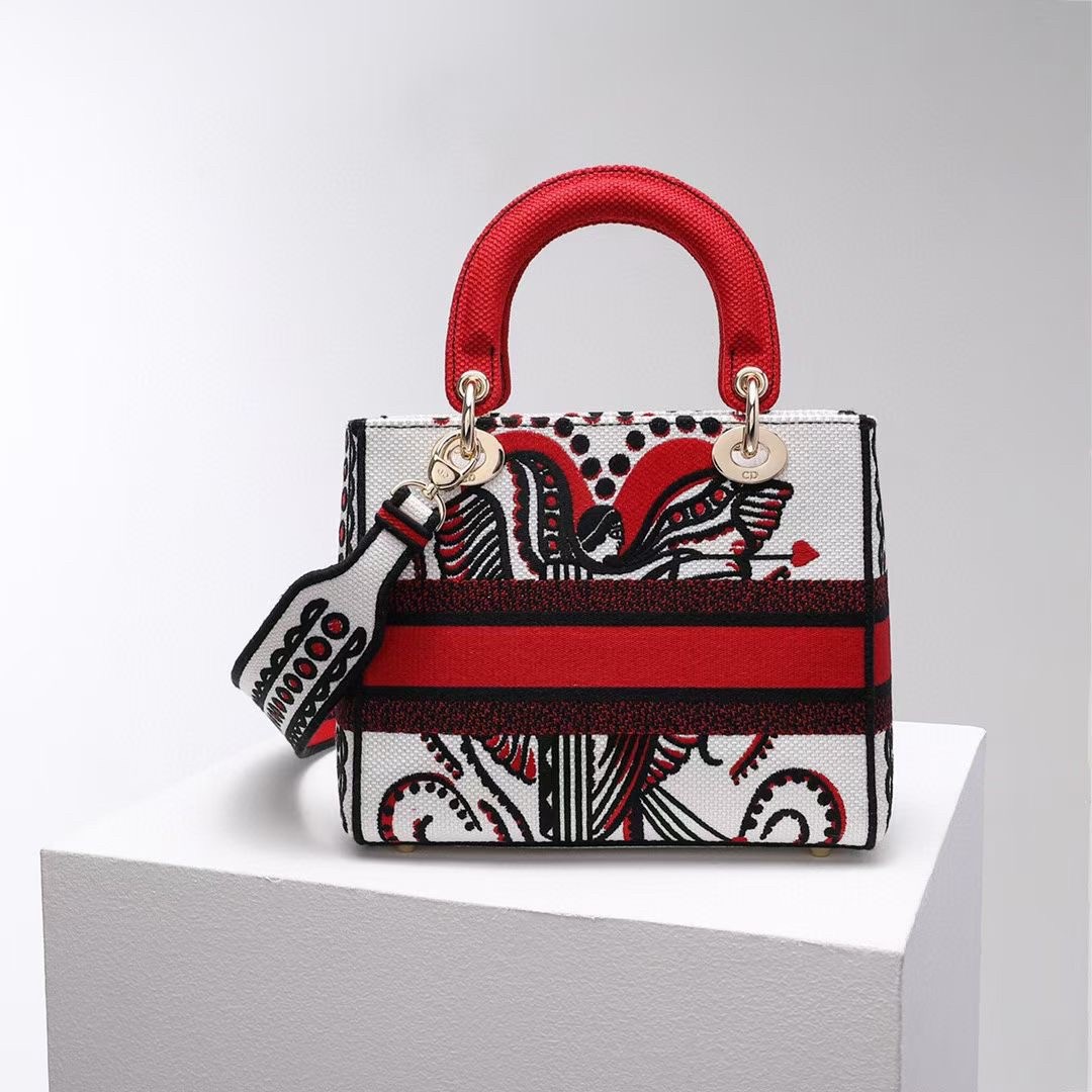 Dior Medium Lady D-Lite Bag In Latte Multicolor Cupidon Embroidery
