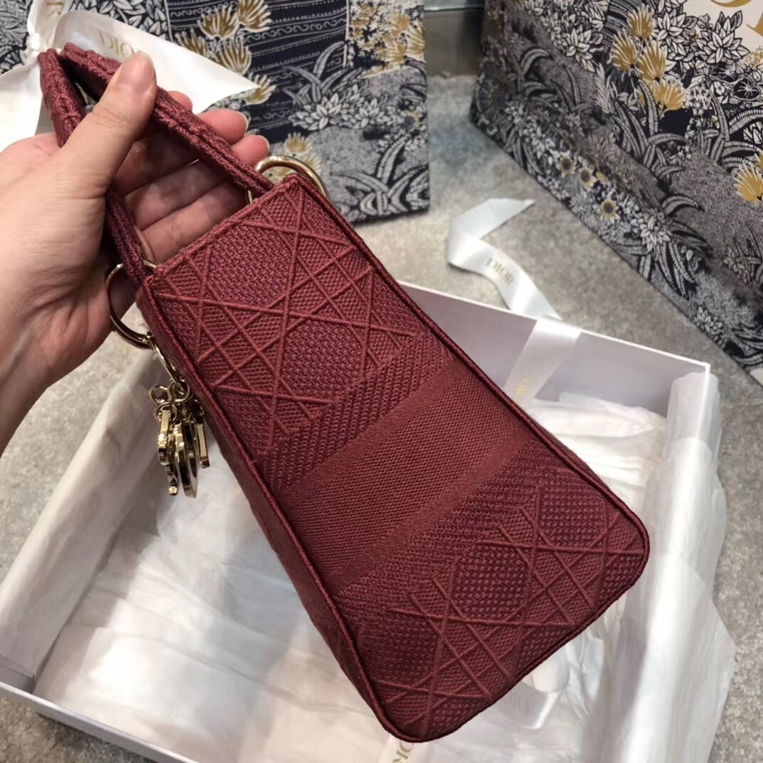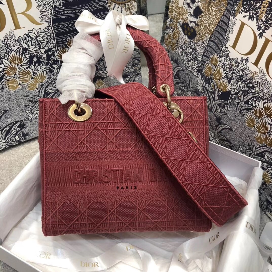Dior Medium Lady D-Lite Bag In Mallow Rose Cannage Canvas