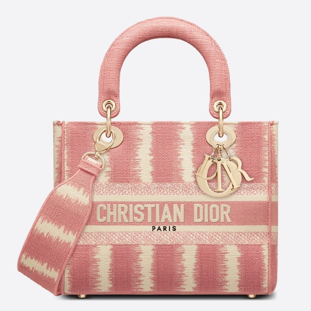 Dior Medium Lady D-Lite Bag In Pink D-Stripes Embroidery