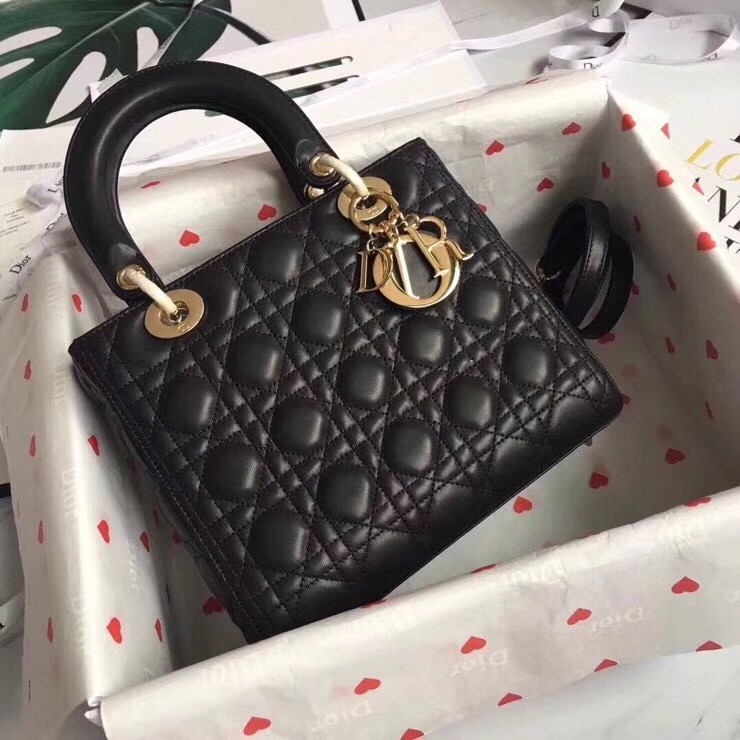 Dior Medium Lady Dior Bag In Black Lambskin